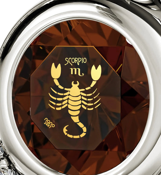 925 Sterling Silver Scorpio Necklace Zodiac Heart Pendant 24k Gold Inscribed on Crystal