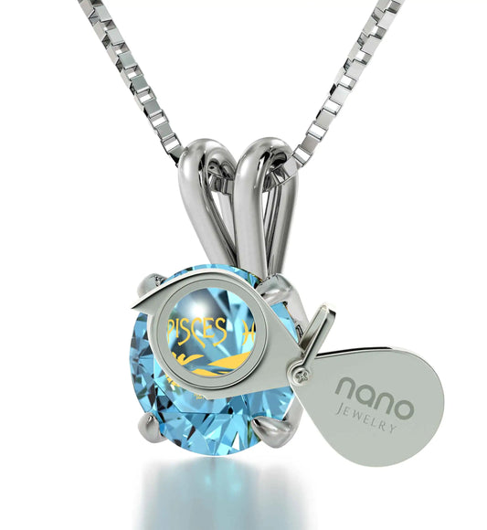 925 Sterling Silver Pisces Necklace Zodiac Pendant 24k Gold Inscribed on Crystal
