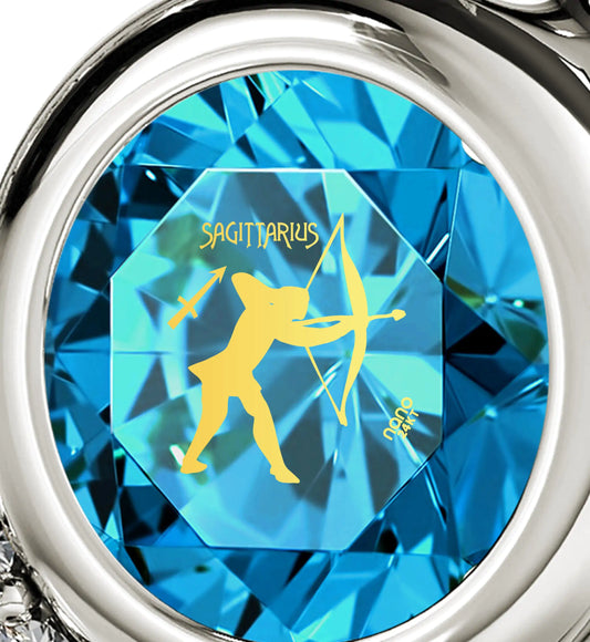 925 Sterling Silver Sagittarius Necklace Zodiac Pendant 24k Gold Inscribed on Crystal