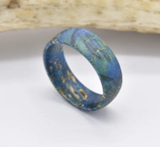 Blue Faux Opal Shell Inlay Tungsten Carbide Ring