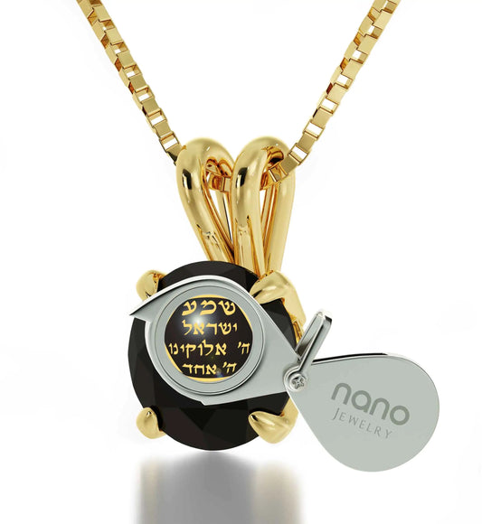14k Yellow Gold Star of David Necklace Shema Israel Solitaire Pendant 24k Gold Inscribed