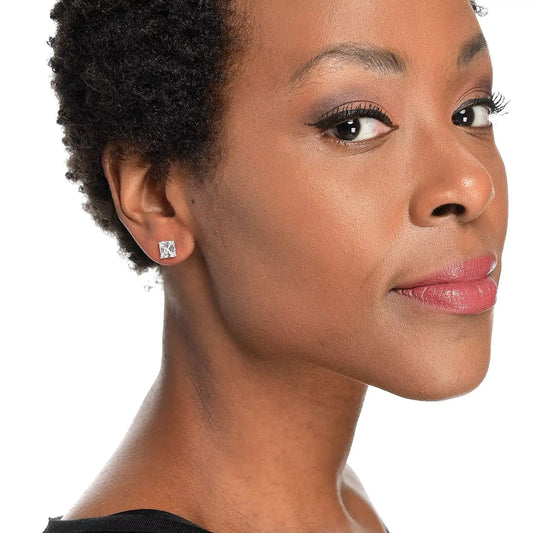 14K Yellow Gold Square Basket Setting Simulated Diamond Stud Earrings