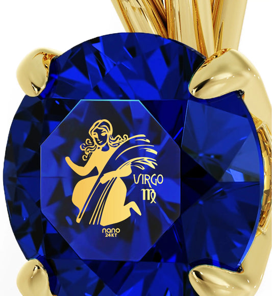 14k Yellow Gold Virgo Necklace Zodiac Pendant 24k Gold inscribed on Crystal