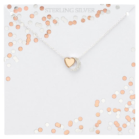 18" Crescent Moon & Heart Slider Pendant Necklace