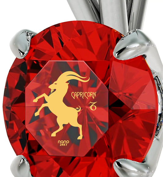 925 Sterling Silver Capricorn Necklace Zodiac Heart Pendant 24k Gold inscribed on Crystal