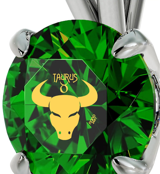 925 Sterling Silver Taurus Necklace Zodiac Pendant 24k Gold Inscribed on Crystal