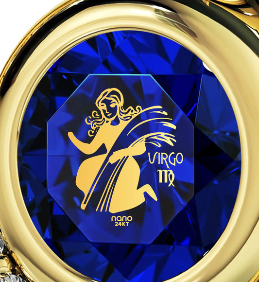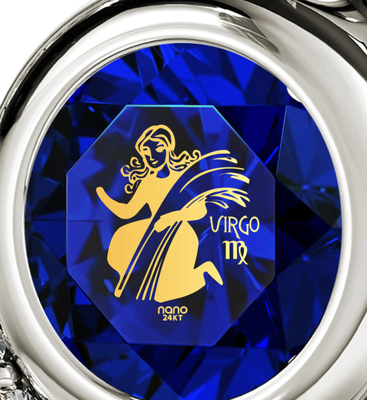 925 Sterling Silver Virgo Necklace Zodiac Heart Pendant 24k Gold inscribed on Crystal