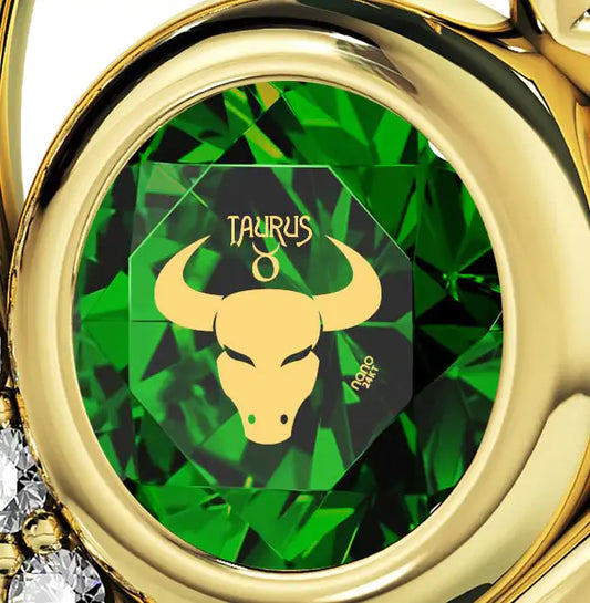 Gold Plated Silver Taurus Necklace Zodiac Heart Pendant 24k Gold Inscribed on Crystal