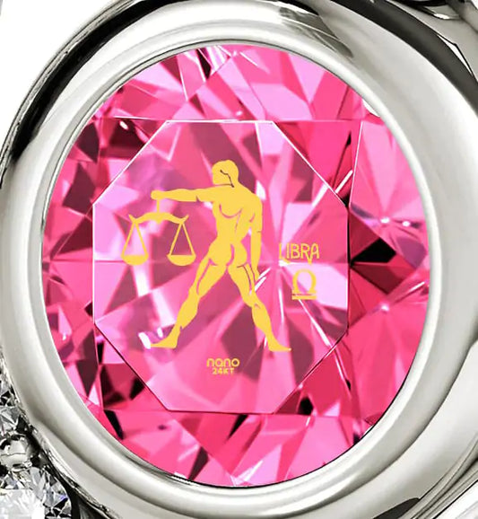 925 Sterling Silver Libra Necklace Zodiac Heart Pendant 24k Gold inscribed on Crystal