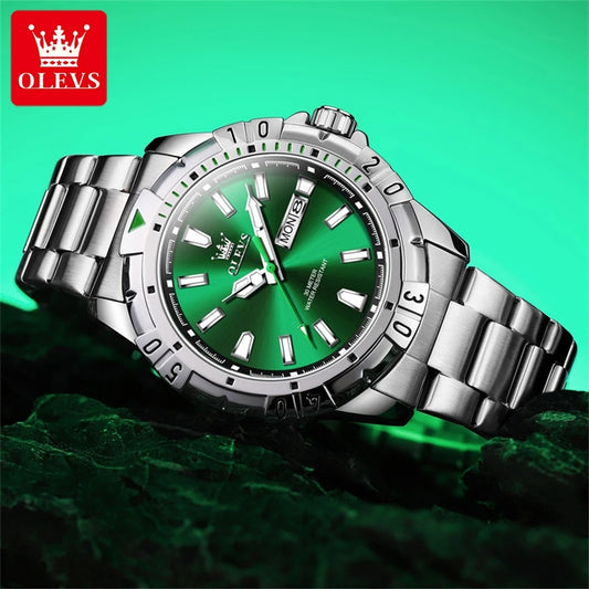 OLEVS Diving Series Quartz Wrist Watch for Men Stainless Steeel Waterproof Luminous Auto Date/Week Men'S Watches Rolex Style