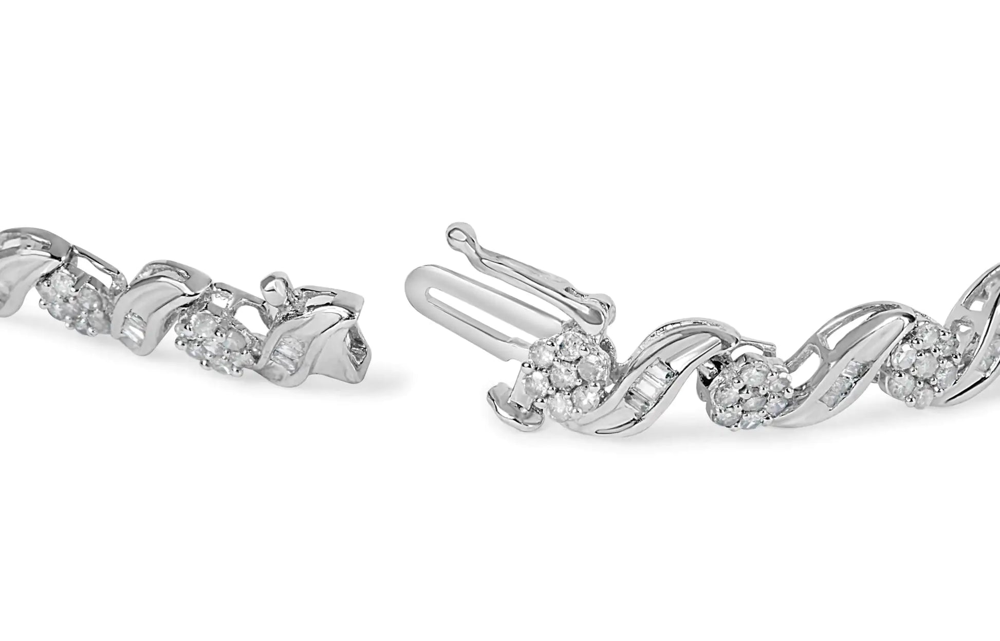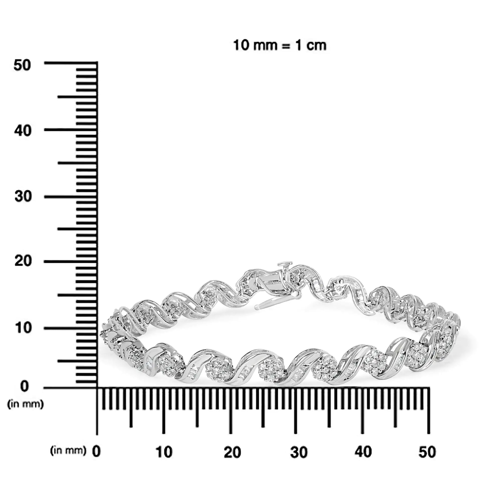 10K White Gold 2.00 Cttw Round-Cut and Baguette-Cut Diamond Floral Design Swirl Link 7" Bracelet (I-J Color, I1-I2 Clarity)