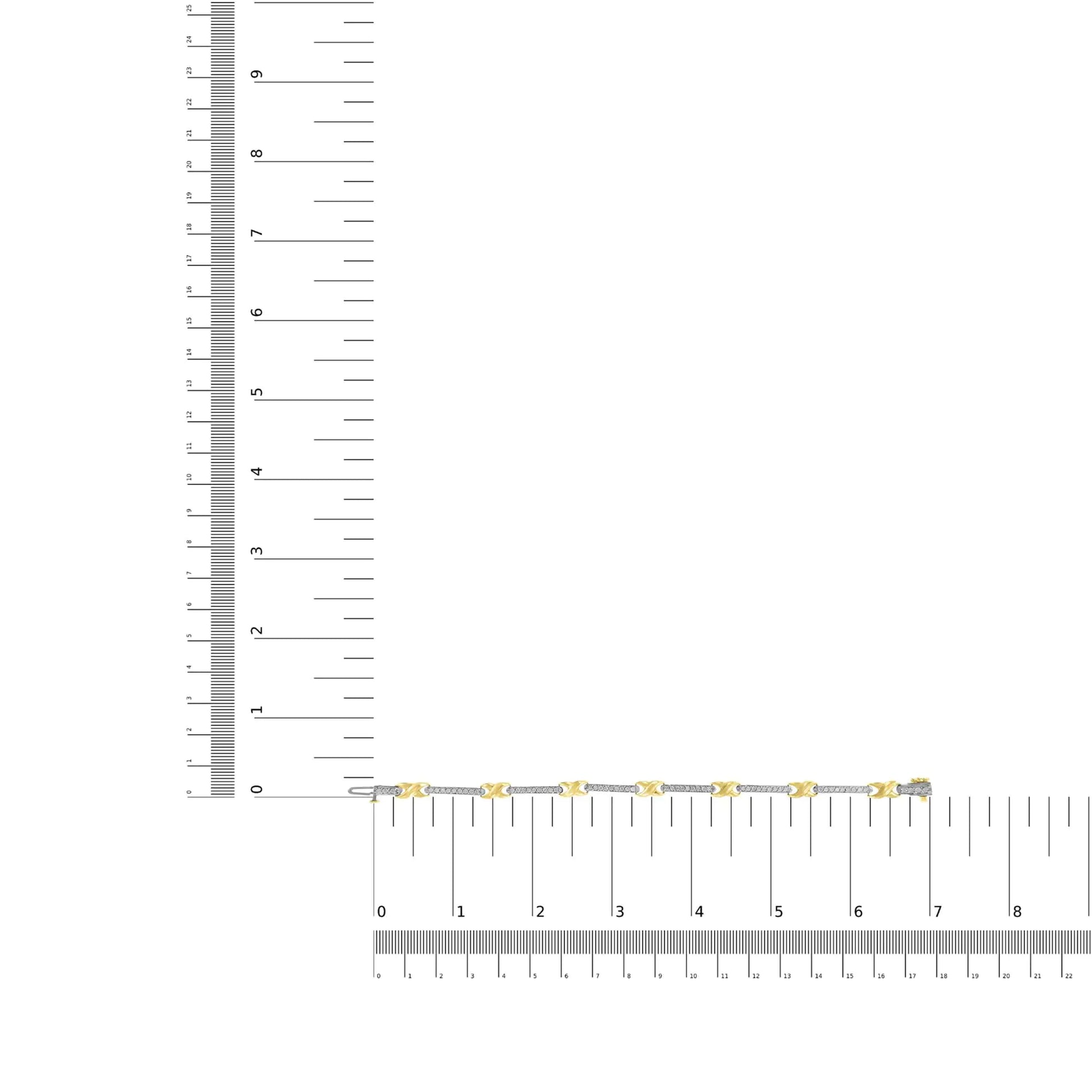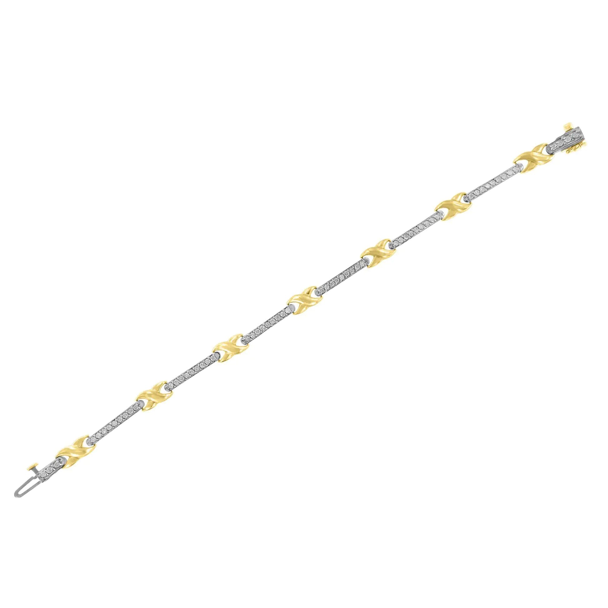 10K Yellow Gold 1.00 Cttw Pave Set Diamond Bar and X-Link 7" Bracelet (I-J Color, I3 Quality)