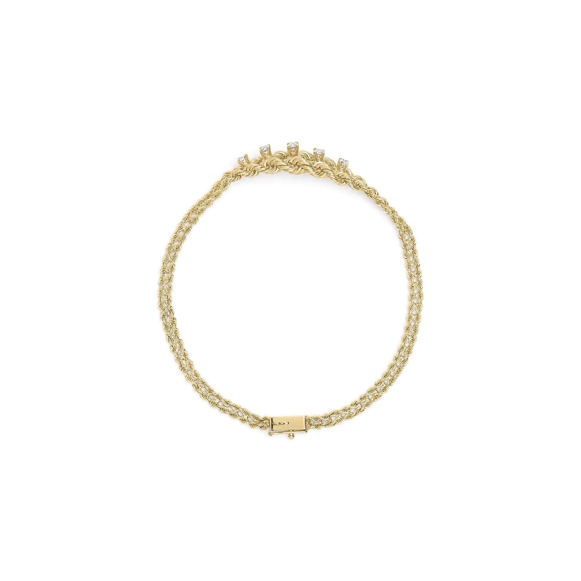 10K Yellow Gold 1/4 Cttw Round-Cut Diamond Basket Weave Rope Chain Style 7" Bracelet (H-I Color, I1-I2 Clarity)