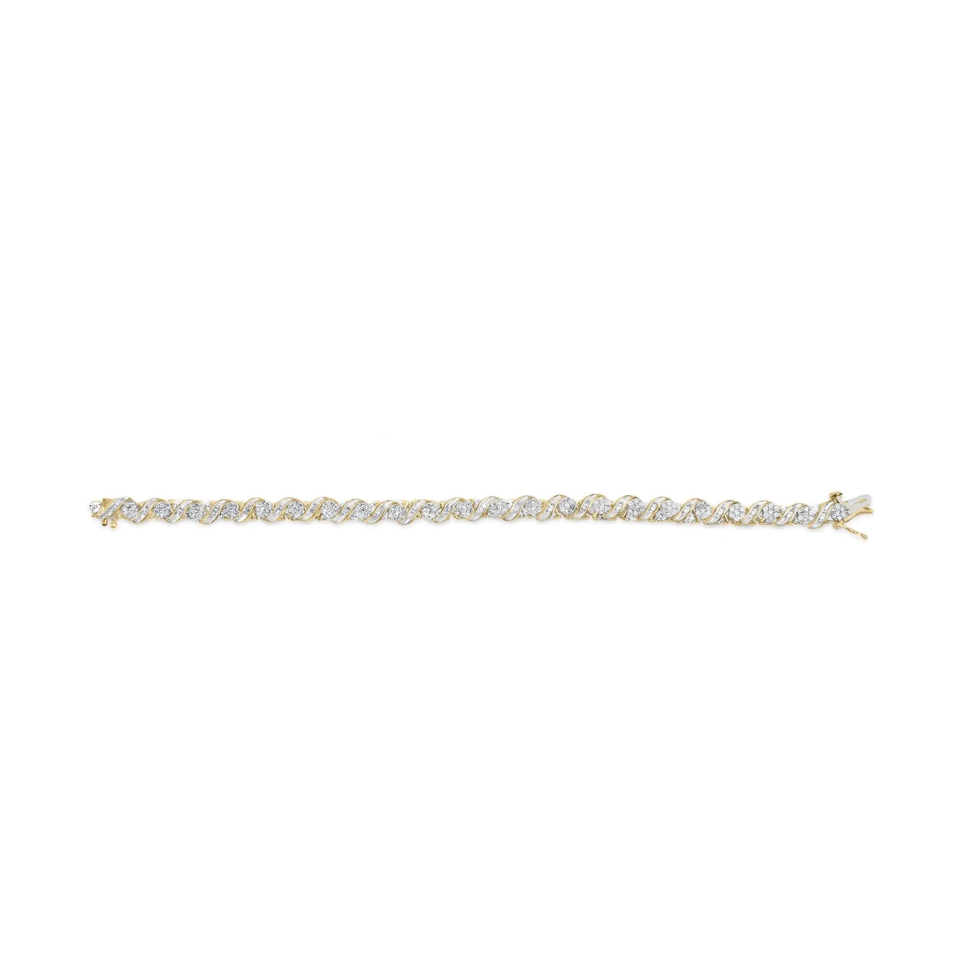10K Yellow Gold 2.00 Cttw Round-Cut and Baguette-Cut Diamond Floral Design Swirl Link 7" Bracelet (I-J Color, I1-I2 Clarity)