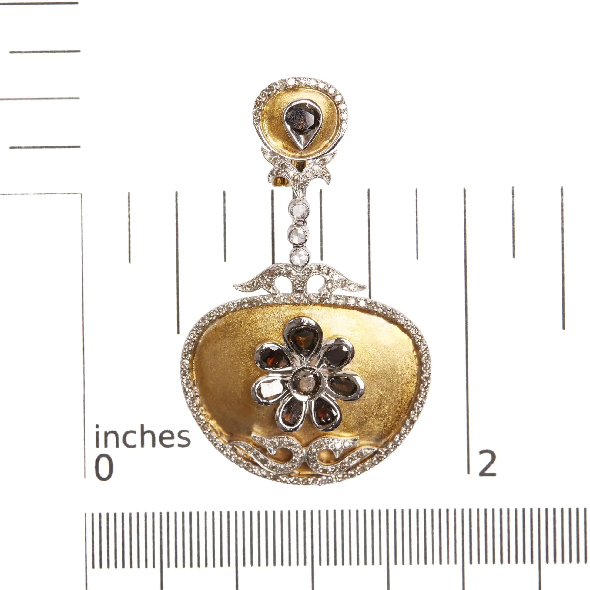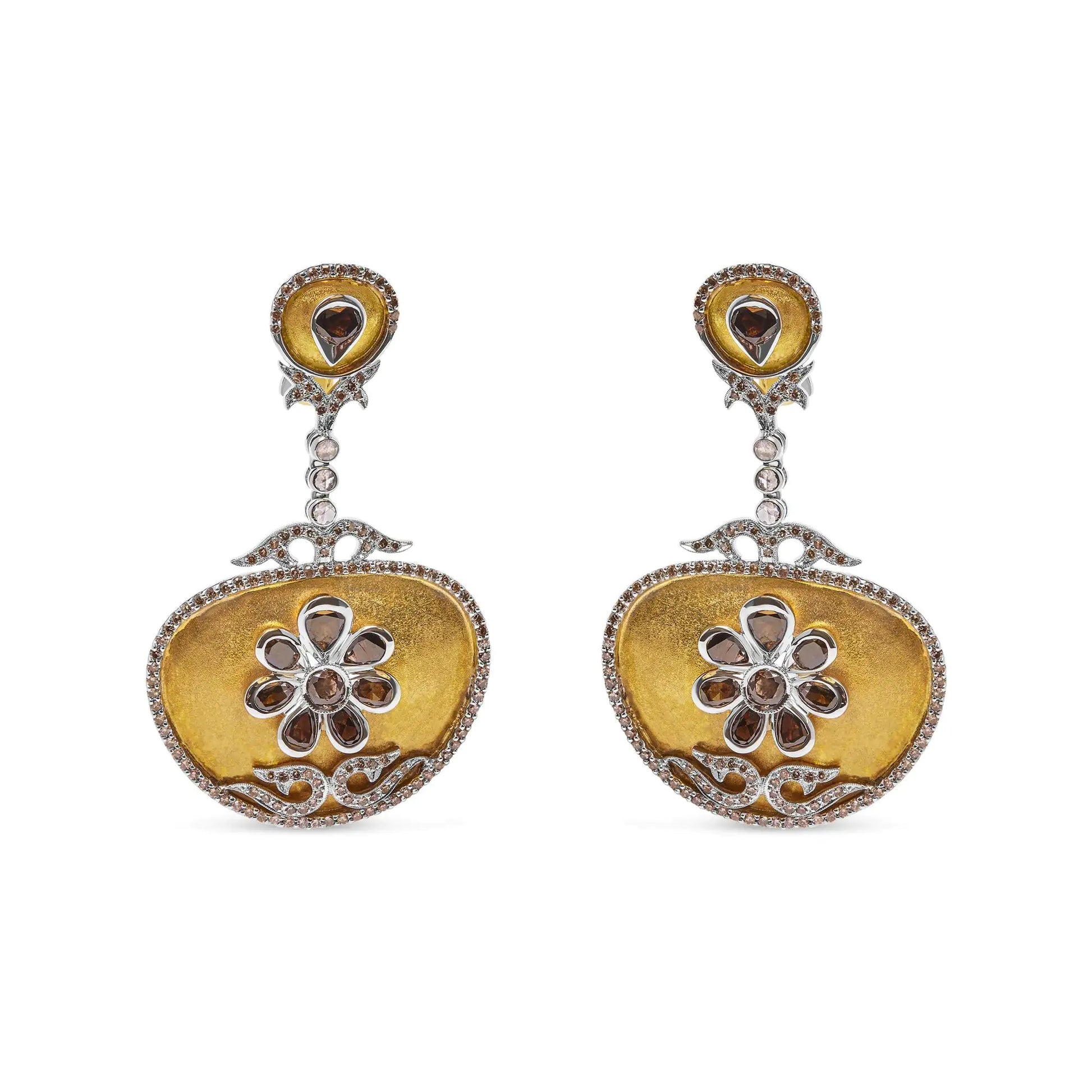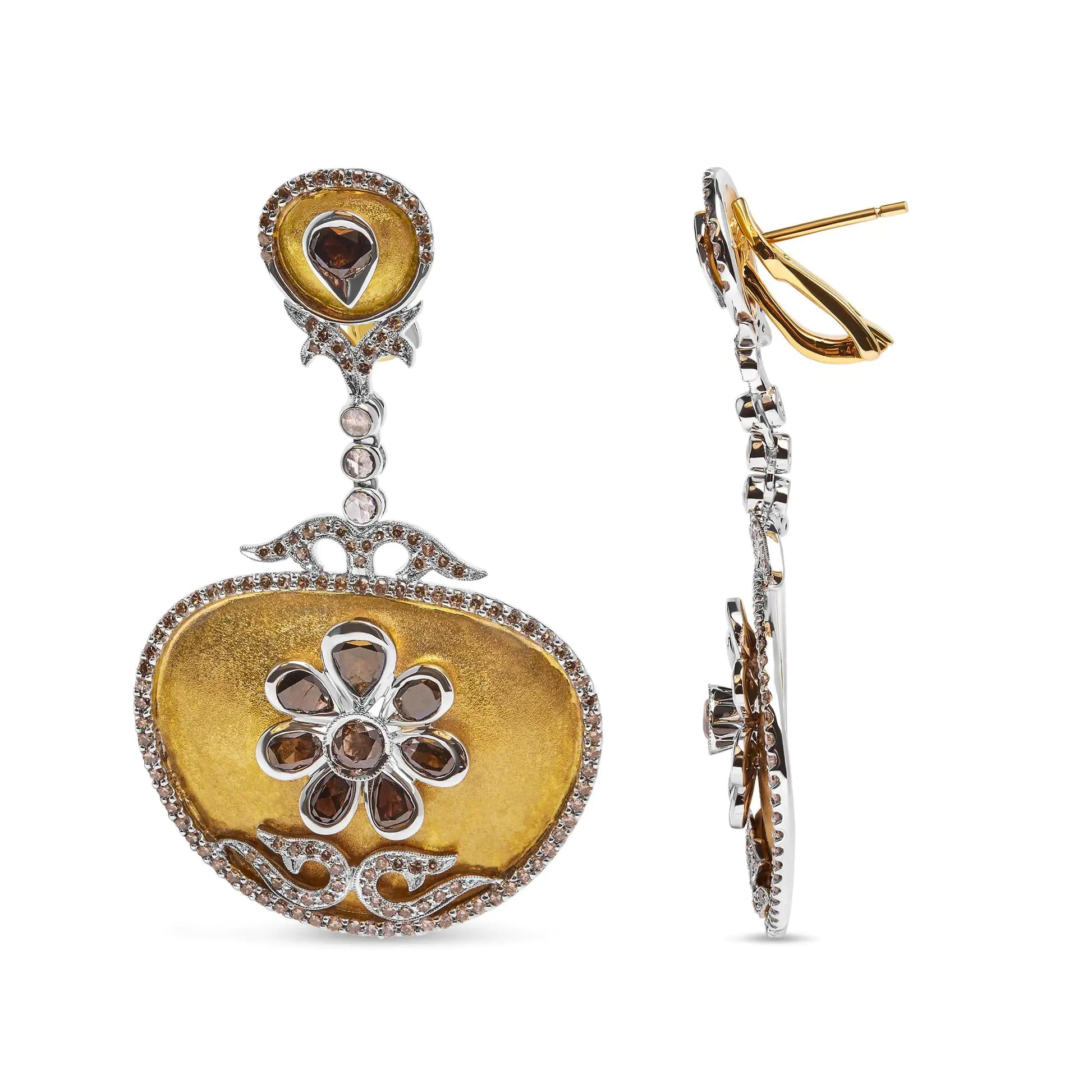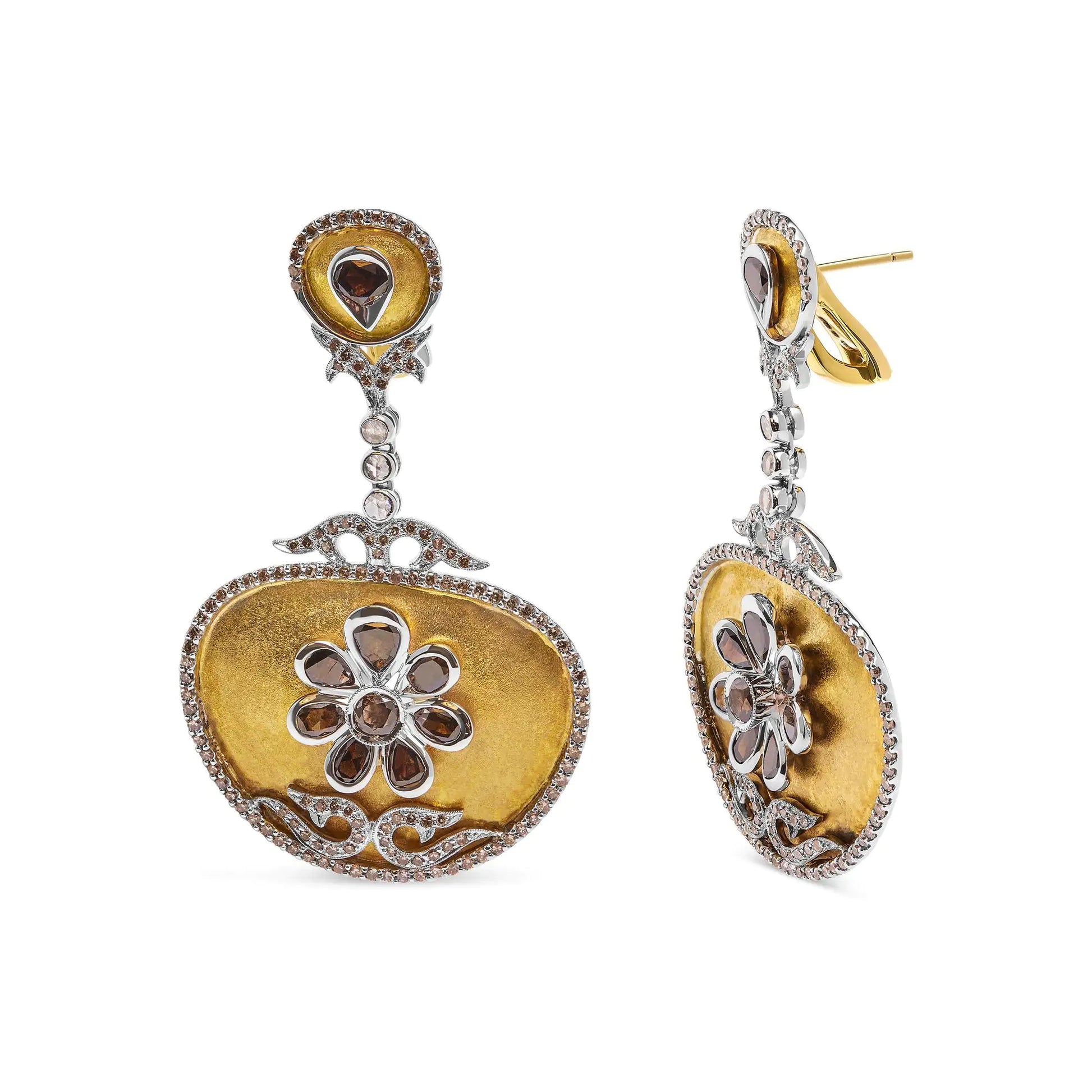 14K White and Yellow Gold 5 1/4 Cttw Rose Cut Diamond Matte Finished Medallion Dangle Earring (Fancy Color, I1-I2 Clarity)
