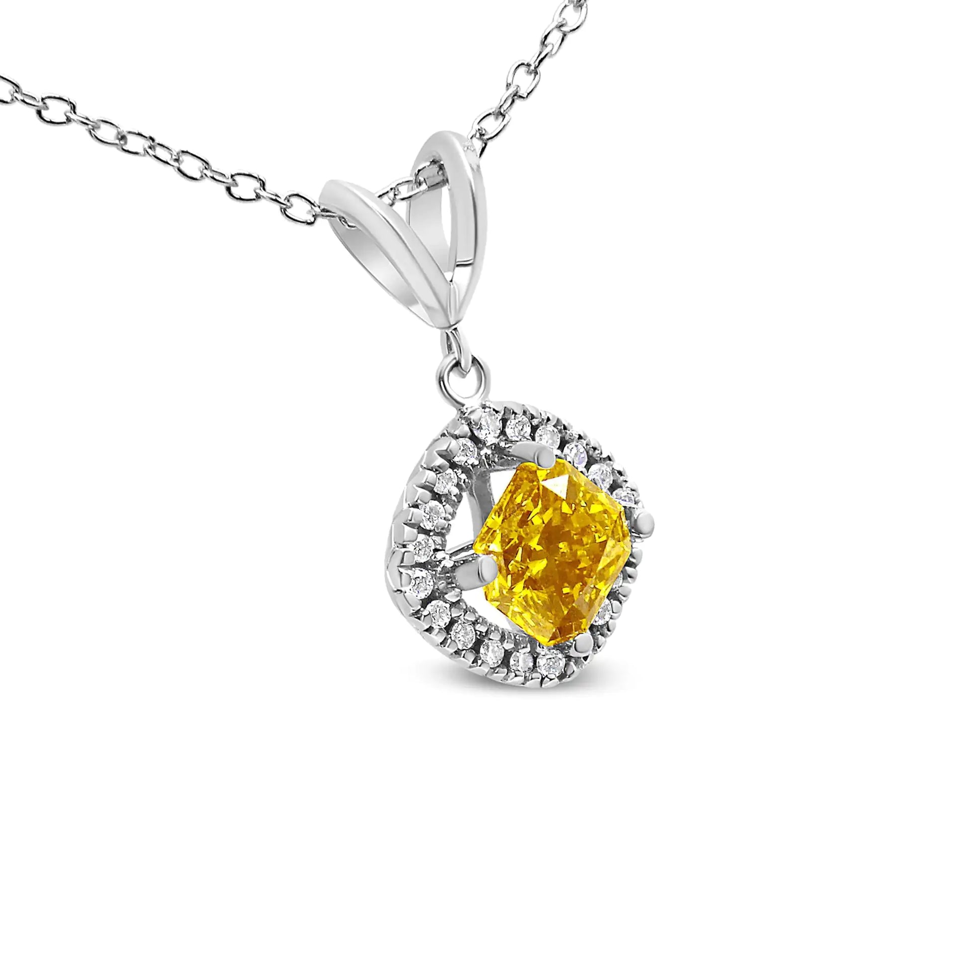 14K White Gold 1 1/5 Cttw Yellow Radiant Lab Grown Diamond Floating Halo Rhombus Shaped 18" Pendant Necklace (Yellow/G-H Color, VS1-VS2 Clarity)