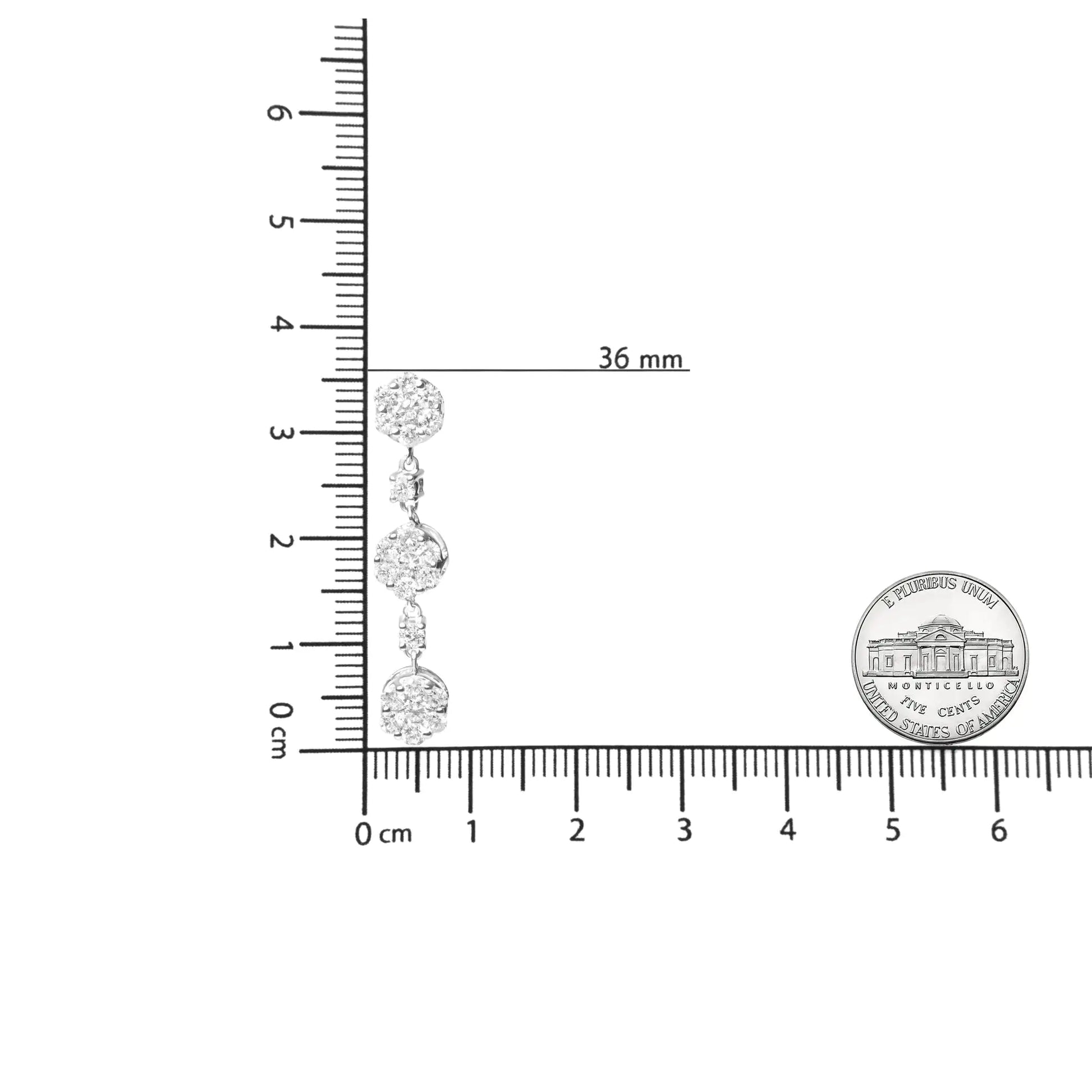 14K White Gold 2.00 Cttw Diamond Composite Cluster Floral Drop Earrings (I-J Color, I1-I2 Clarity)