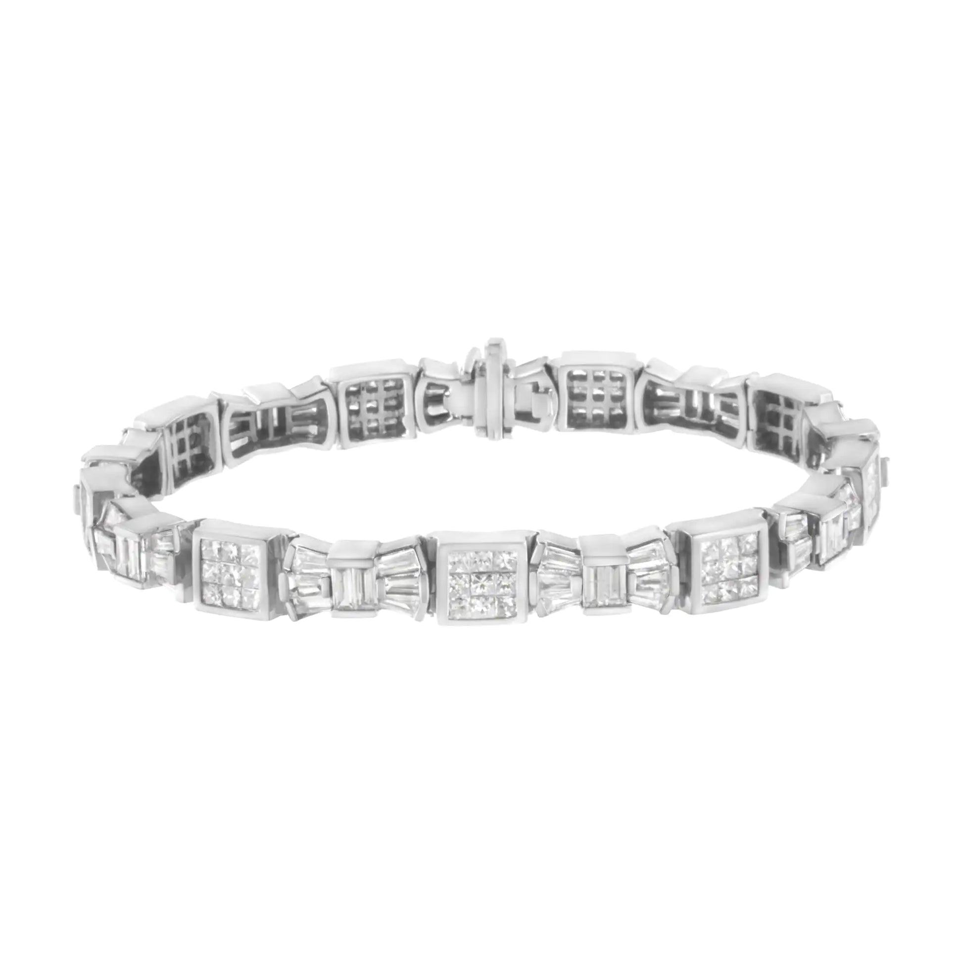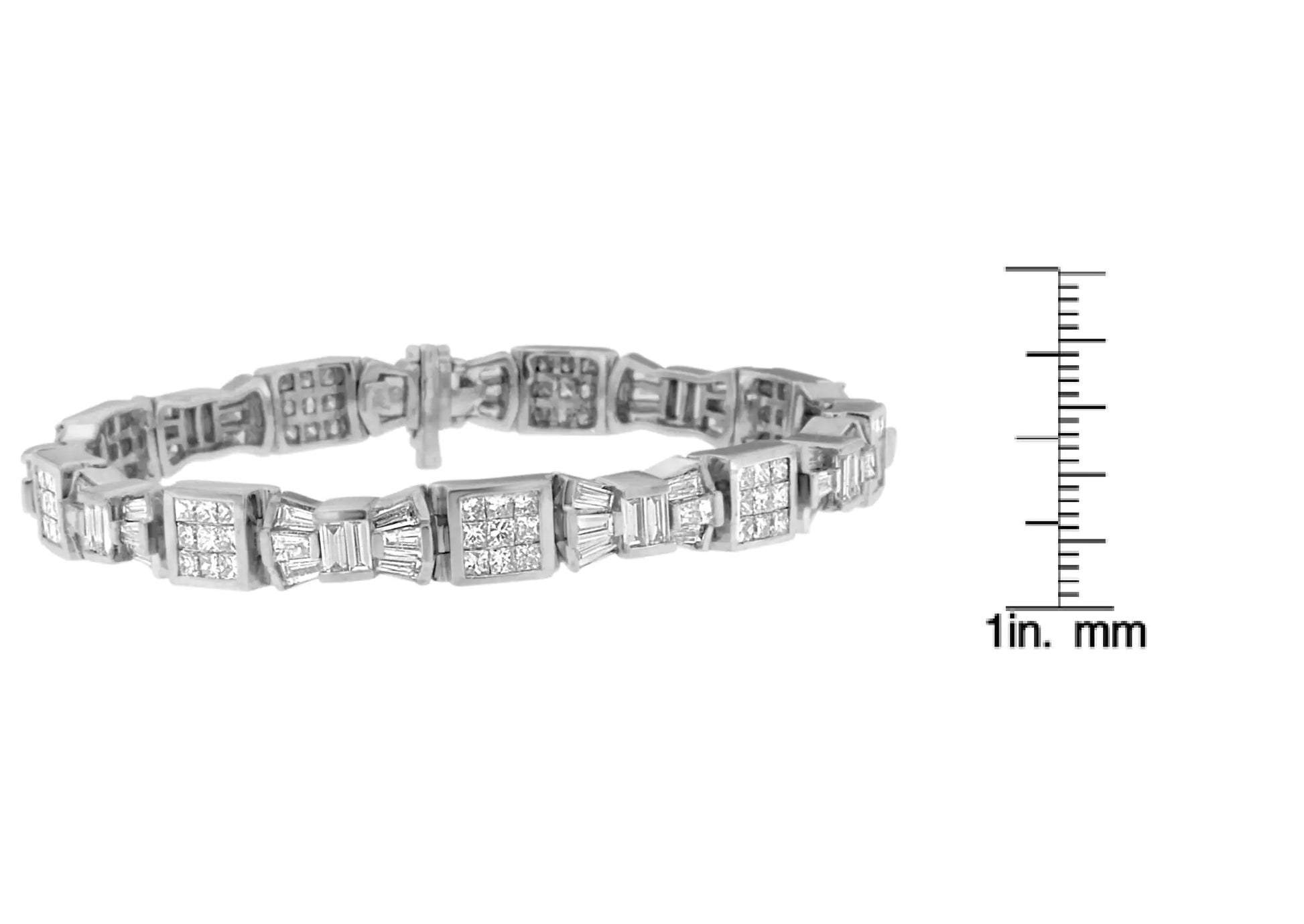 14K White Gold Princess and Baguette-Cut Diamond Mod Bow Bracelet (9.00 cttw, G-H Color, VS2-SI1 Clarity)