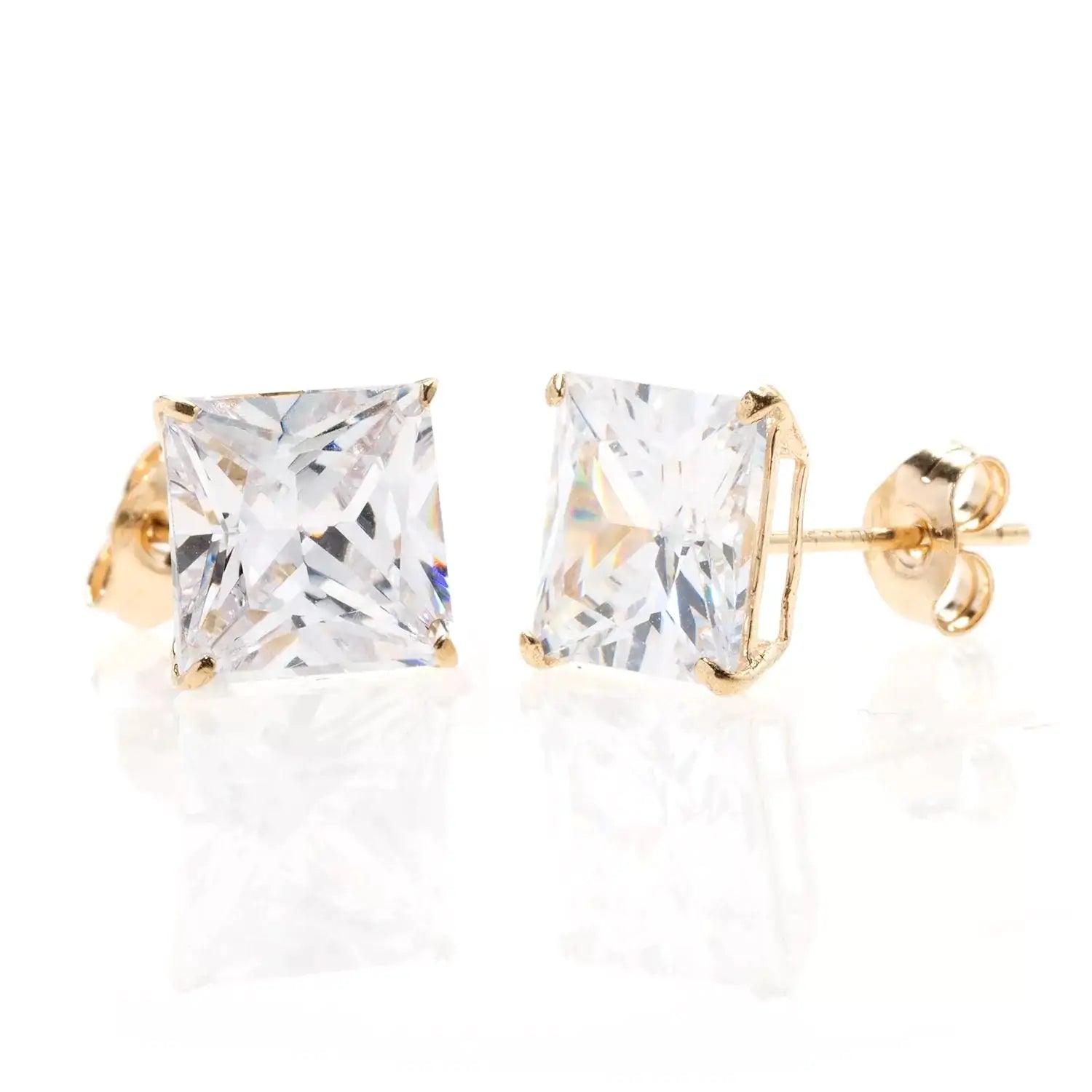 Boasting a sizable amount of shine packed into a petite package, this pair of gold stud earrings makes a perfect addition to your look. These earrings come in not just your choice 14K white, rose or yellow gold, but are also available in a selection of sizes. A 4mm, 5mm, 6mm, 7mm or 8mm square simulated diamond dazzles at the center of each stud, while push backs keep this shimmering set of studs perched in place