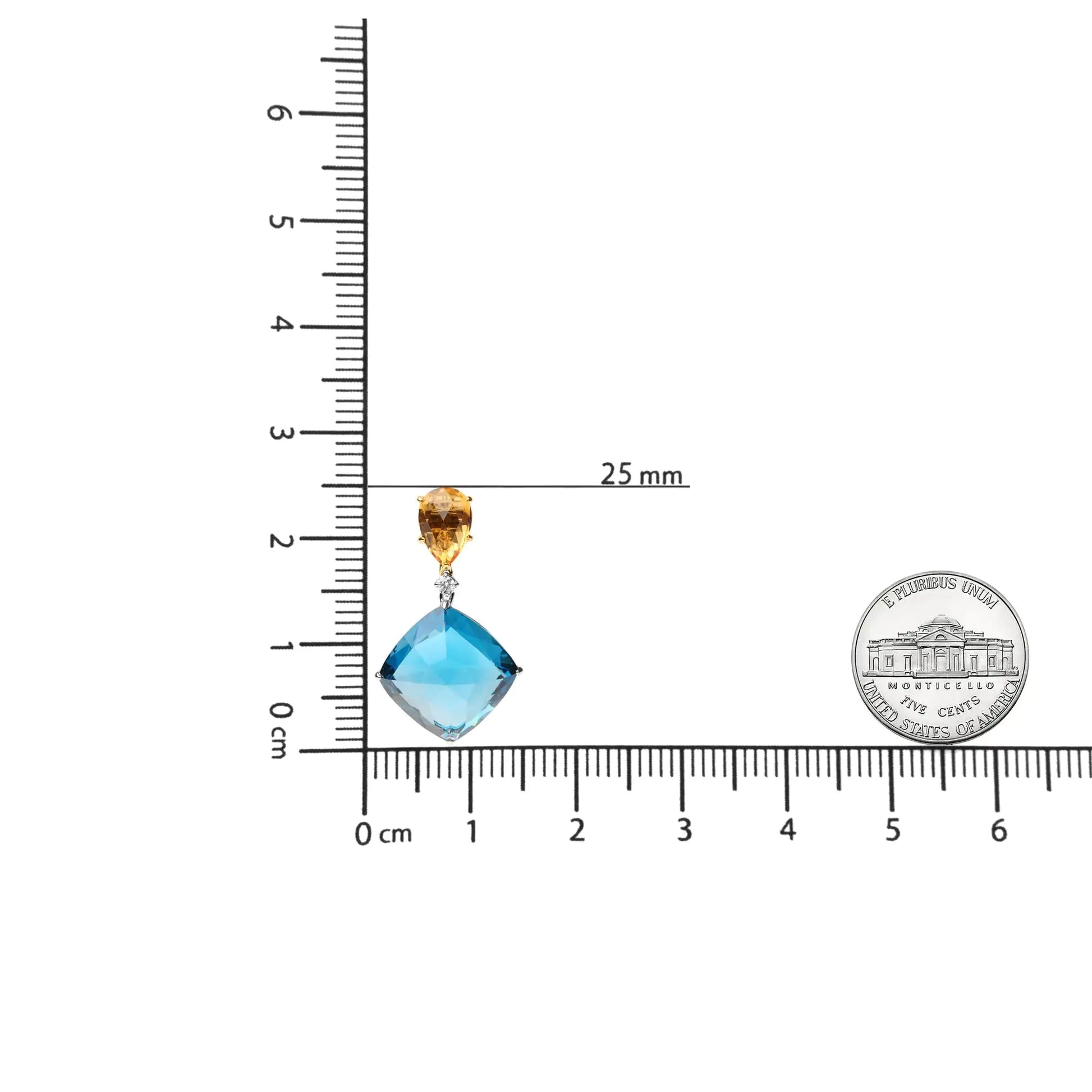 18K White and Yellow Gold 1/6 Cttw Diamond with Pear Cut Yellow Citrine and 20mm Cushion Cut Blue Topaz Gemstone Dangle Earrings (G-H Color, SI1-SI2 Clarity)