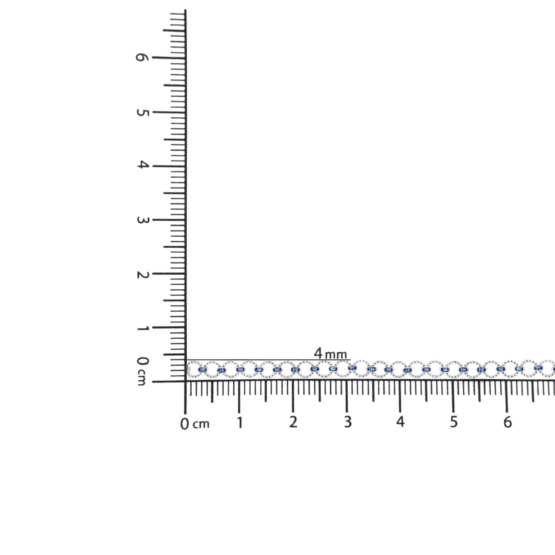 This luxury18k white gold link bracelet showcases a shimmering circle links set with glorious round white diamonds in prong settings. These sparkling stones total 6 cttw with an approximate F-G Color and SI1-SI2 Clarity. Each circle link is punctuated by a natural 5x3mm oval color-treated blue sapphires that emanate a rich, colorful sparkle. This bracelet fastens securely with a box with clasp. It is 7 inches long, best for small and medium sized wrists.