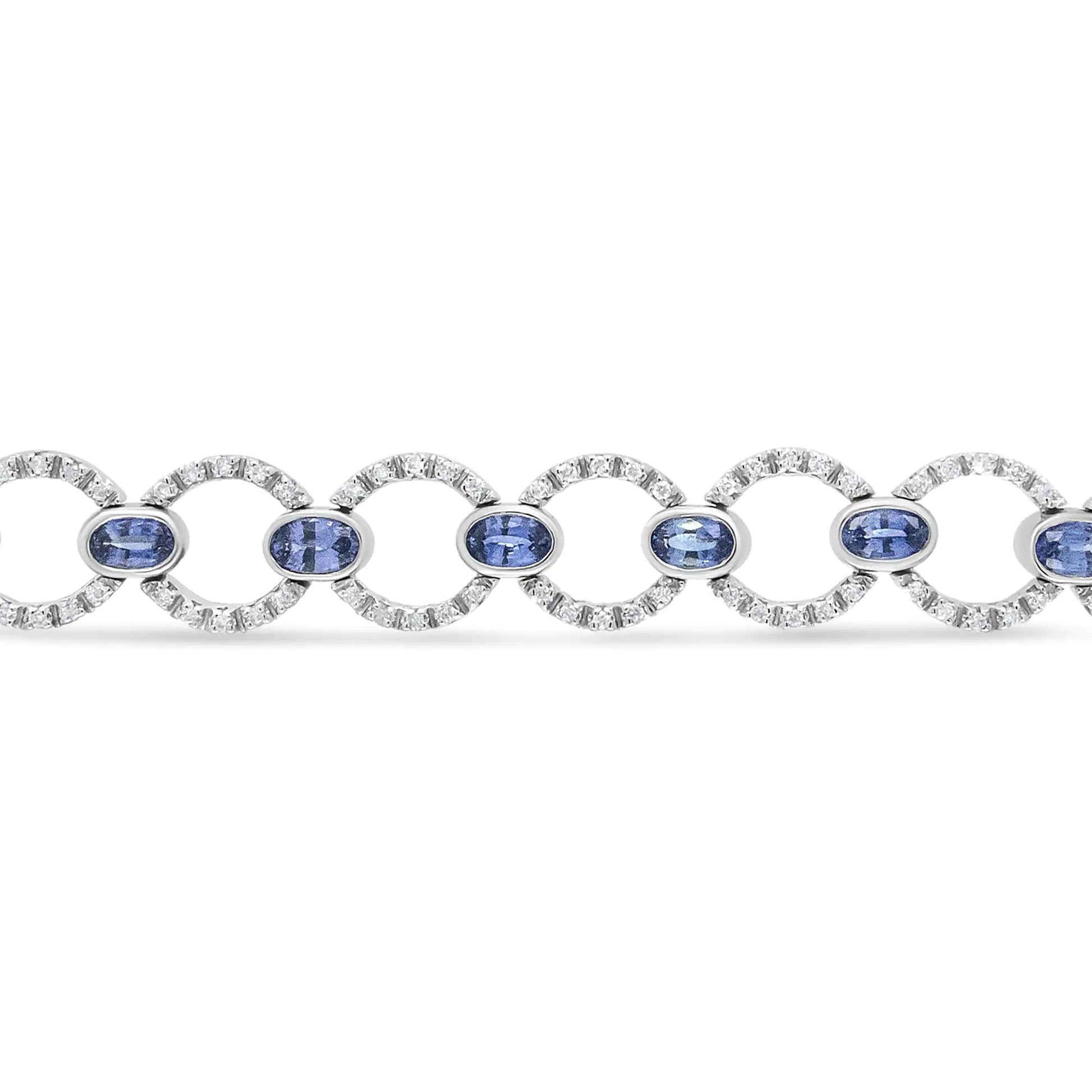 18K White Gold 6 Cttw Diamond and 5x3mm Oval Blue Sapphire Openwork Circle Link Bracelet (F-G Color, SI1-SI2 Clarity) - Size 7"