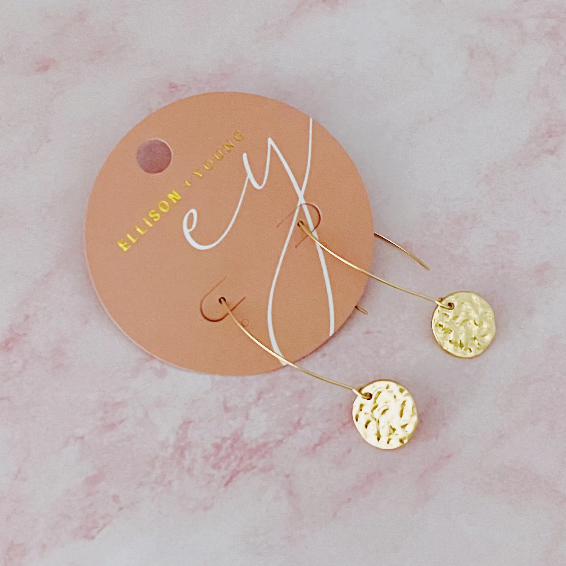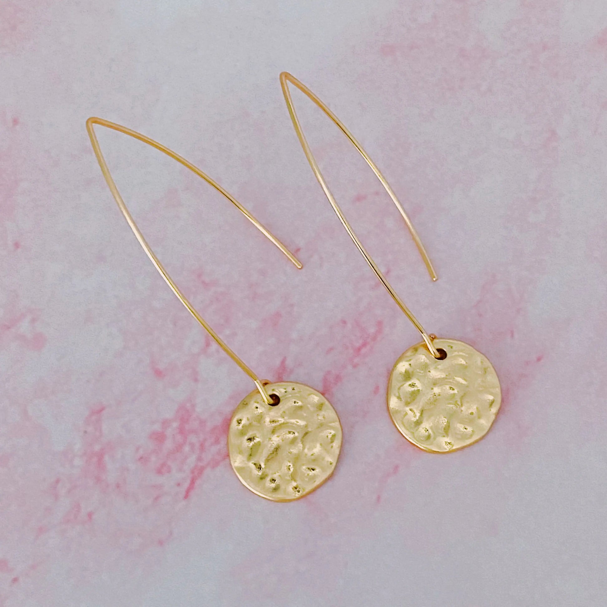 These Antique Moon Drop Earrings feature a fish hook with a unique antique finish disc for a stylish and lightweight look. Perfect for any occasion, their simple yet chic design is sure to elevate your look and make any ensemble stand out.