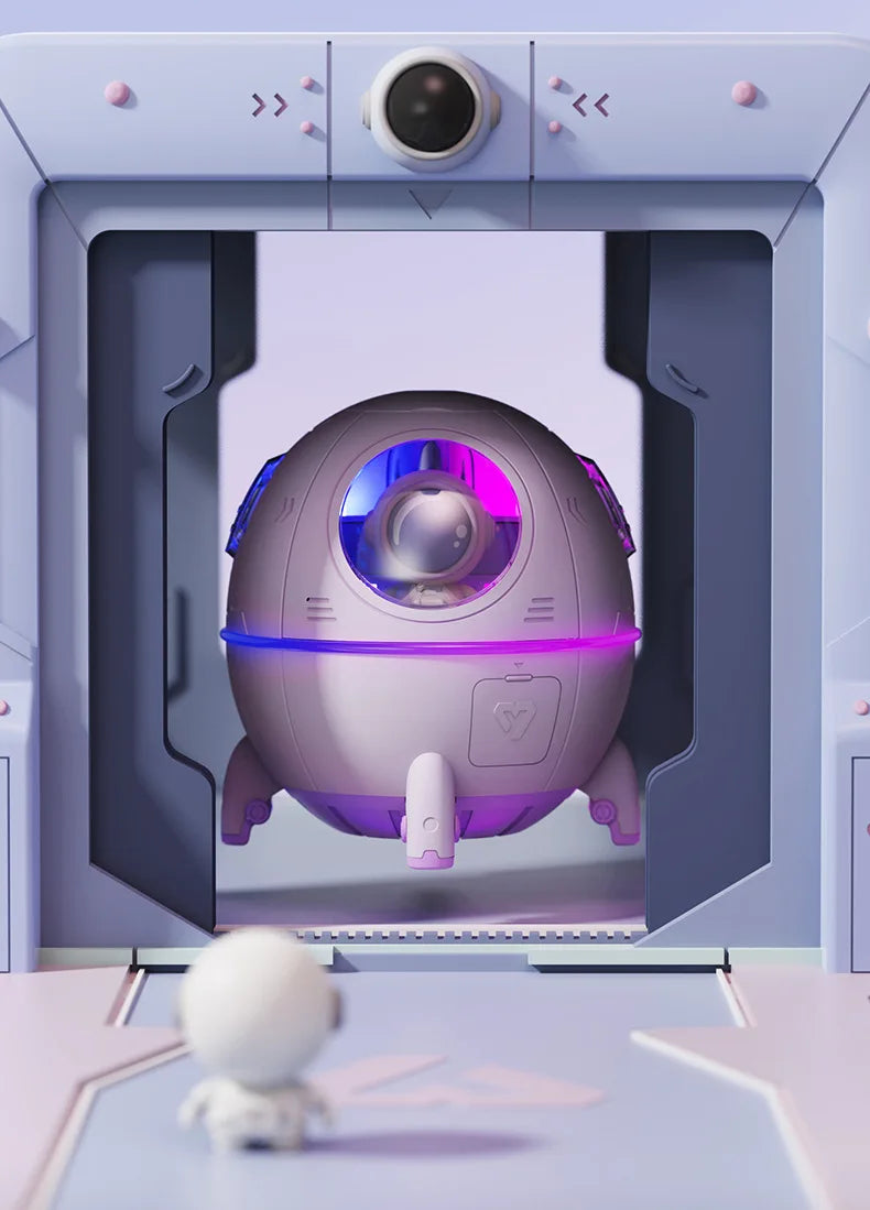 Experience the perfect blend of functionality and futuristic design with our astronaut capsule air humidifier. This unique device not only adds moisture to the air but also serves as a captivating decor piece, enhancing your living space.
