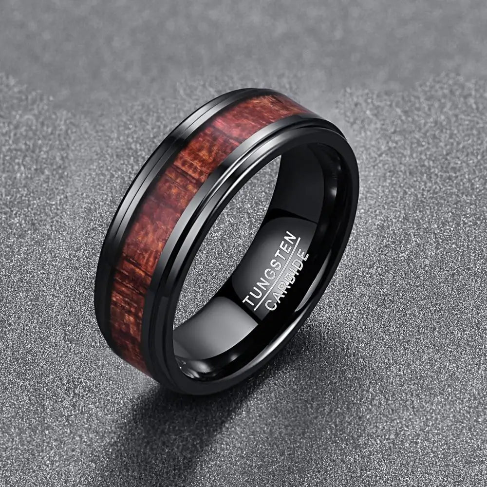 Black Wooden Tungsten Carbide Ring