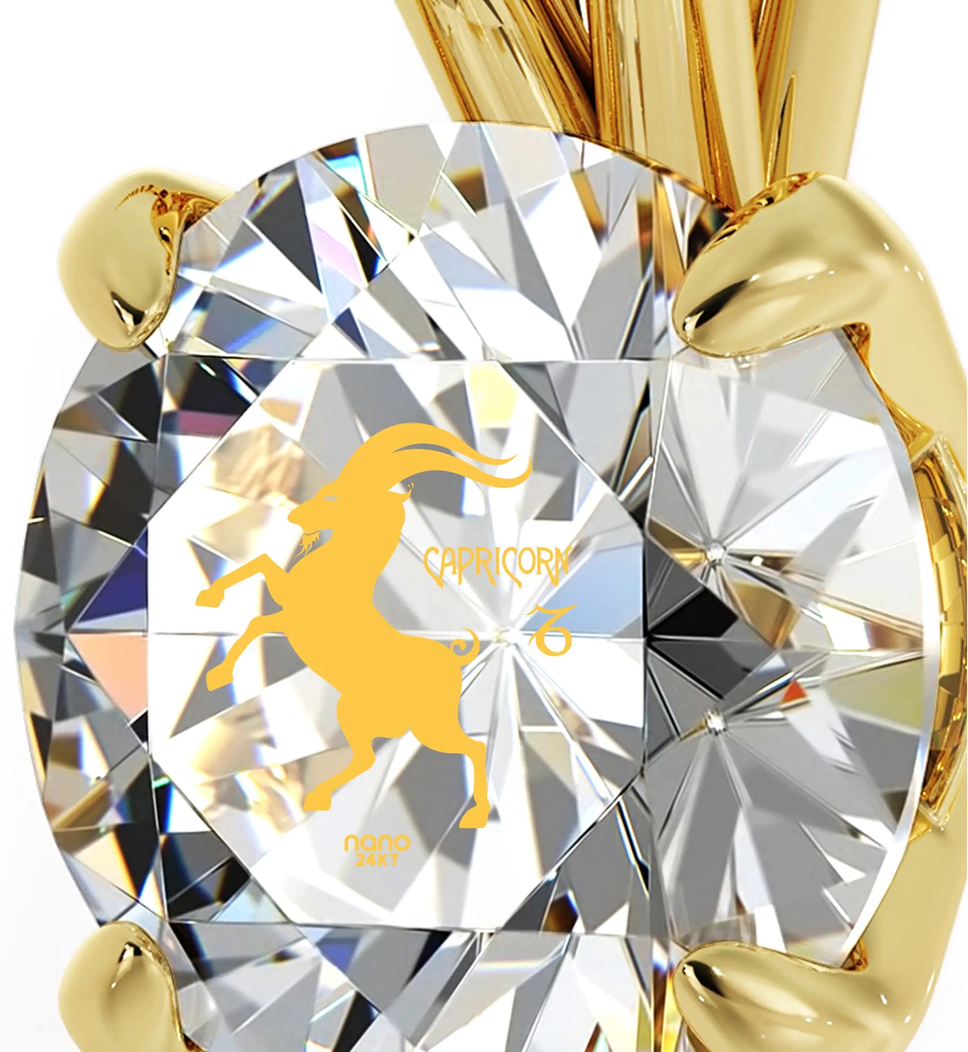 Embrace the radiance of a brilliant round-cut crystal Swarovski, delicately inscribed with the image of Capricorn, the goat and star sign symbol, elegantly set within a classic gold-plated silver solitaire pendant. With a serene demeanor and unwavering inner strength, Capricorns embody a unique essence that can be celebrated through this zodiac necklace. Whether marking a birth month or gifting a special someone, this cosmic celestial necklace offers a distinctive birthday gift idea for astrology enthusiasts. Its charm extends to mothers too, making it a thoughtful Mother's Day gift to cherish their child's birthstone color and zodiac sign, encapsulating meaningful connections in an elegant accessory.