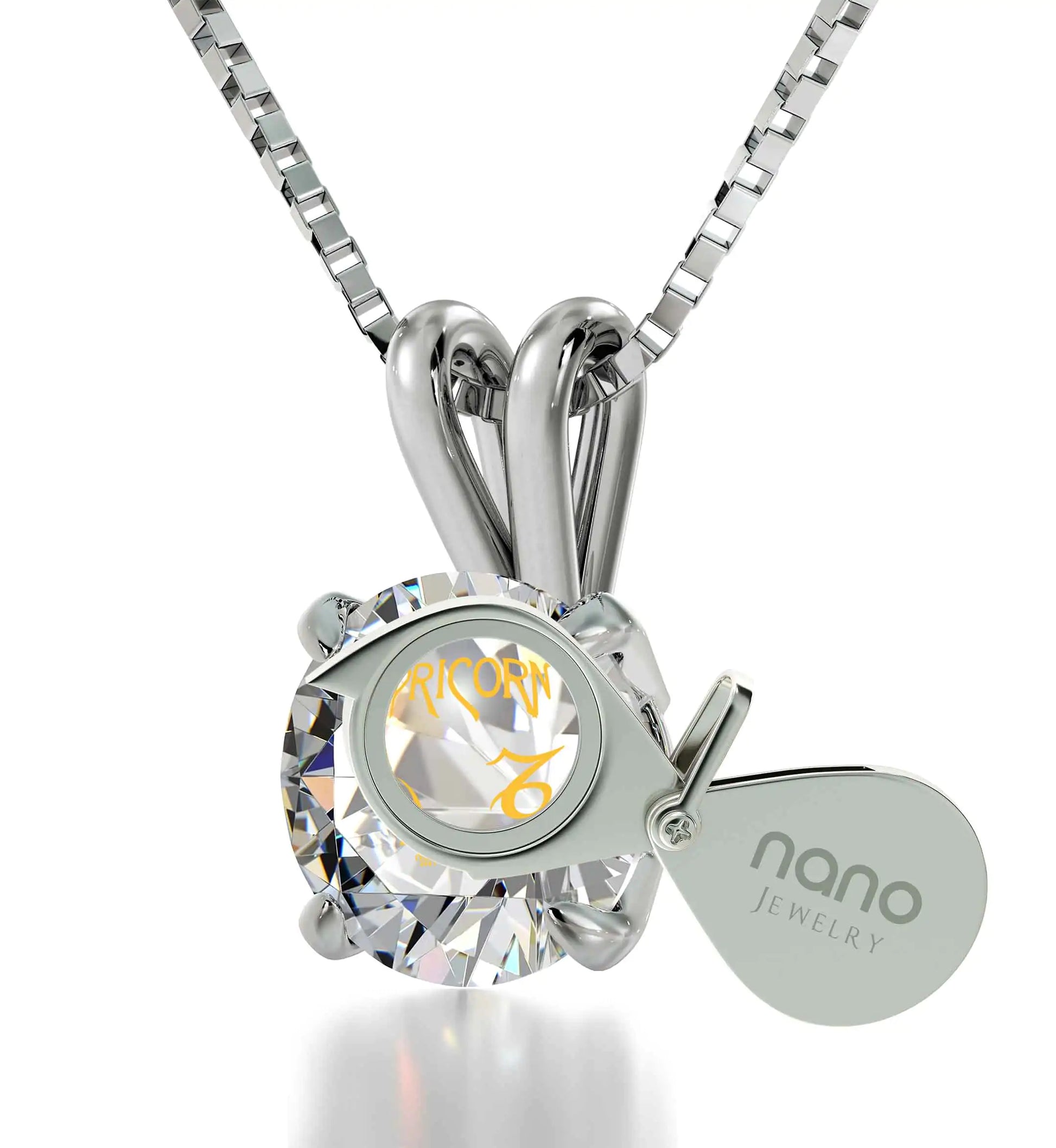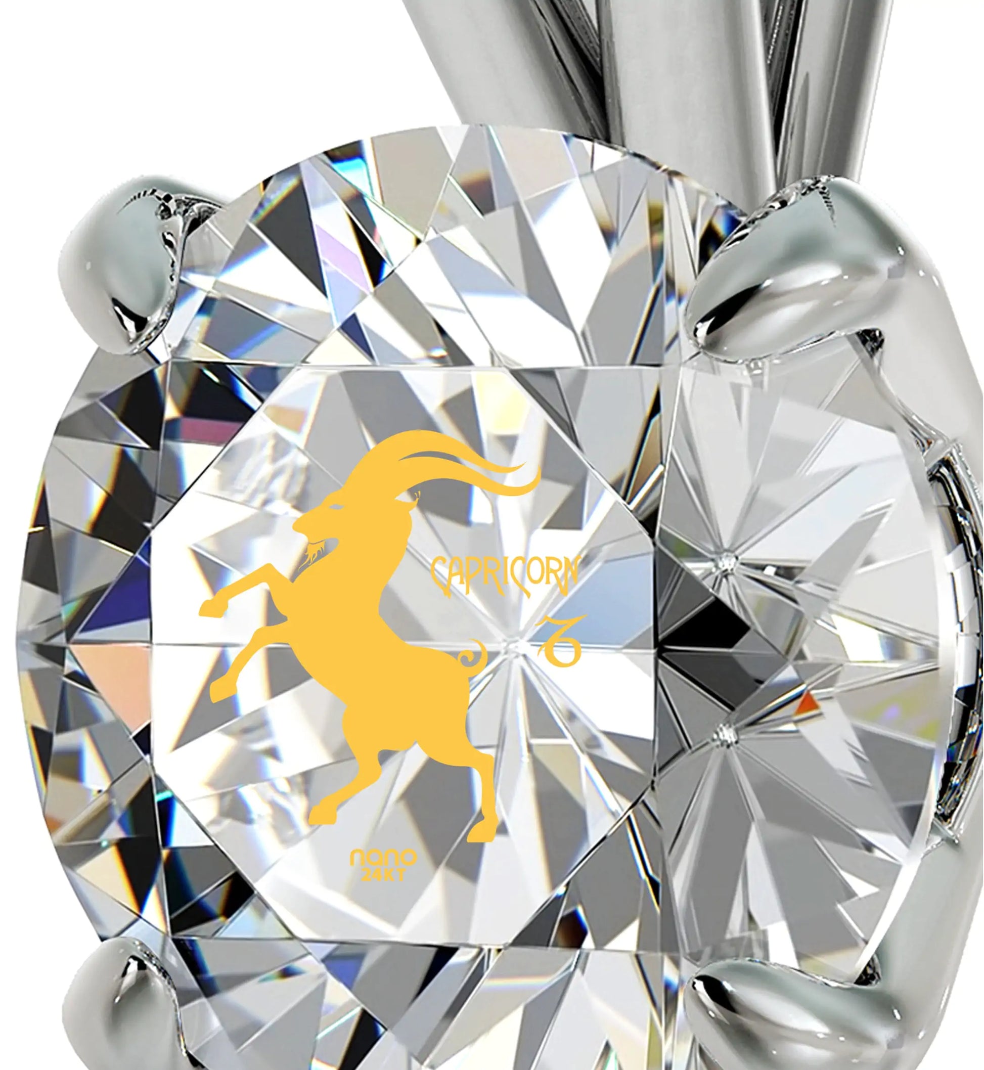 Embrace the steadfast nature of Capricorn with our Zodiac Swarovski Crystal Pendant. Featuring a brilliant round-cut Swarovski crystal inscribed in 24k gold with the image of the determined goat and star sign symbol, this pendant captures the essence of resilience, control, and calmness associated with Capricorns. Set in a classic 925 sterling silver solitaire pendant, it's a timeless and meaningful gift for those born under this sign or anyone who resonates with Capricorn's qualities. Whether it's a birthday, anniversary, or a special occasion, this cosmic celestial necklace is a truly distinctive and cherished present that will leave a lasting impression on the recipient.