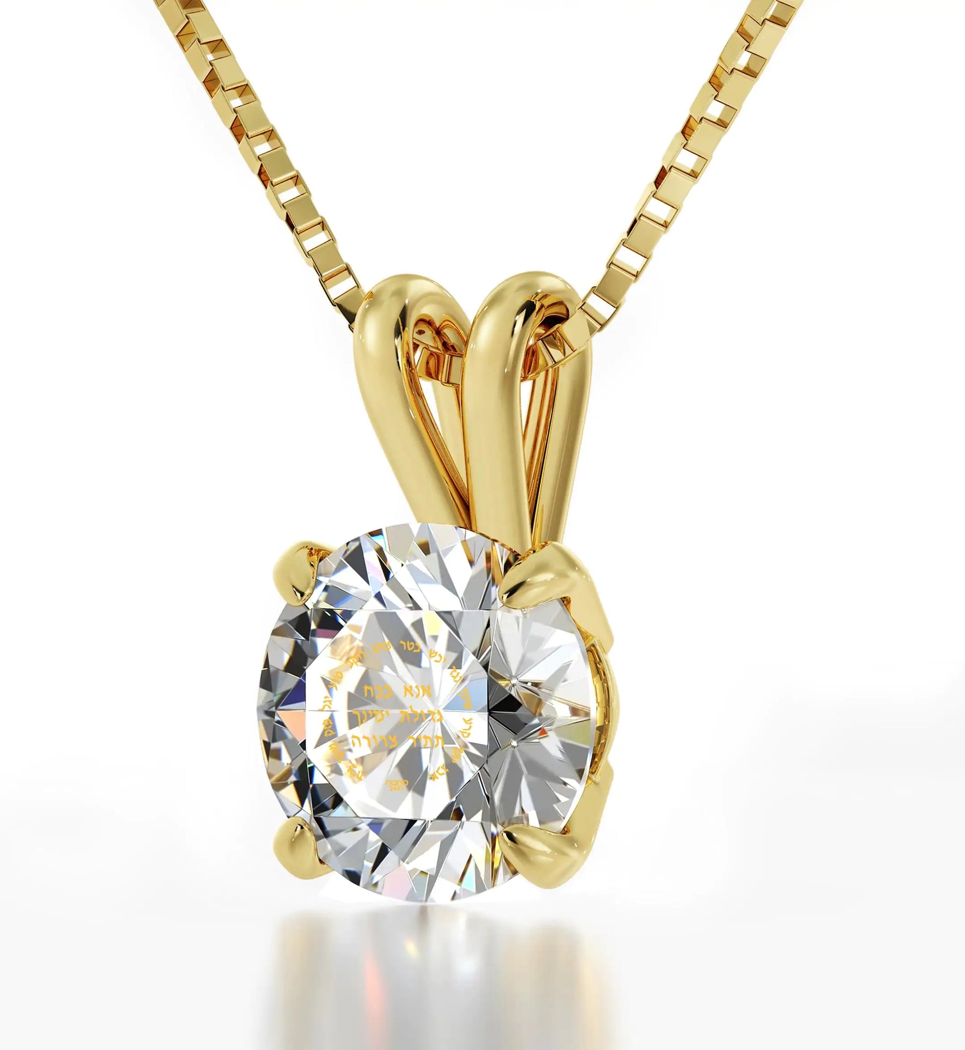 A brilliant-cut crystal Swarovski inscribed in 24k gold with Ana Bekoach, one of the most powerful prayers and spiritual blessings recited by Jewish people every day and before an important occasion in order to elevate beyond the five senses, give strength and channel another spiritual dimension.