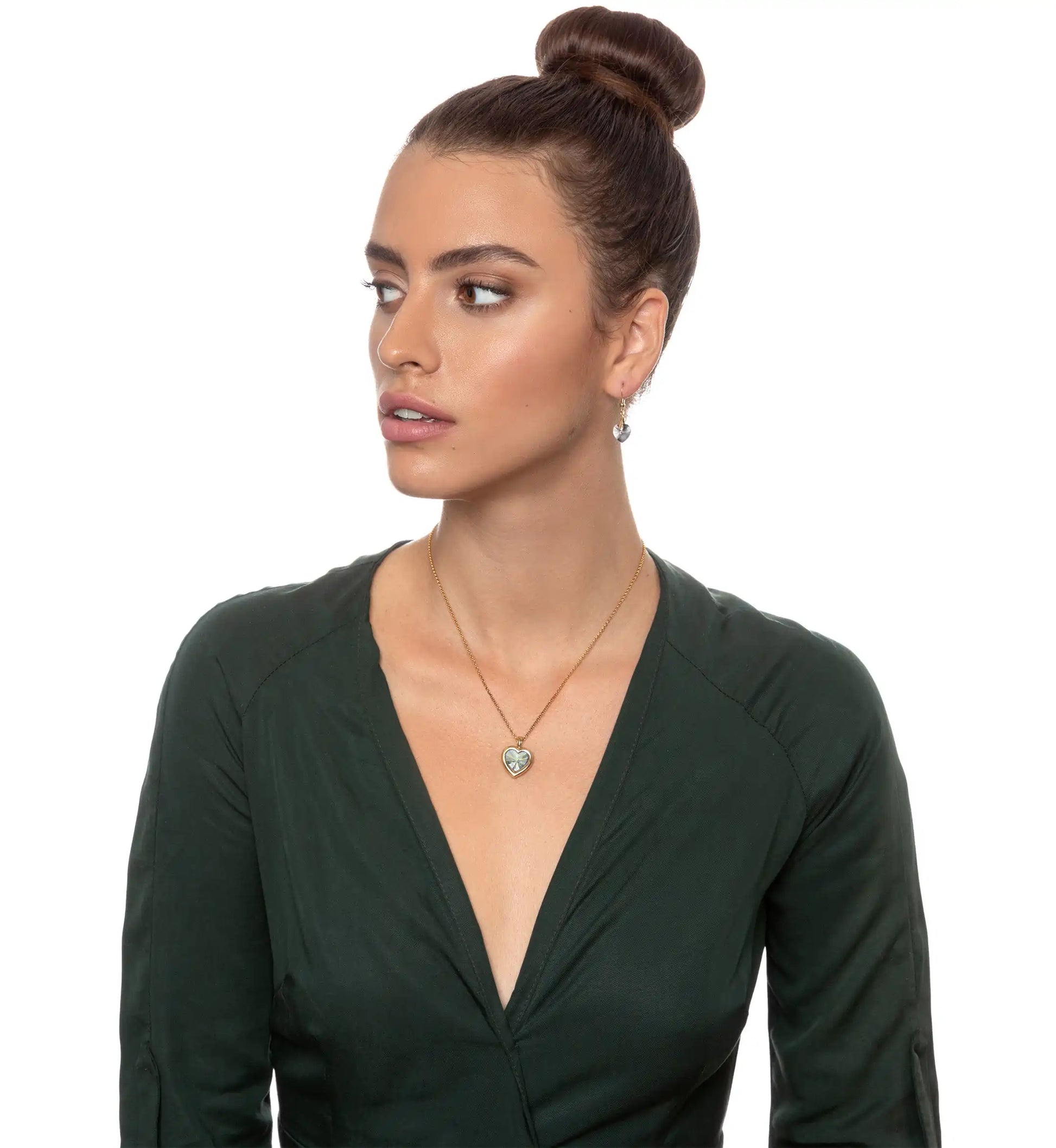 An elegant cubic zirconia heart pendant inscribed with "I love you" in 120 different languages in 24k gold set in gold plated.