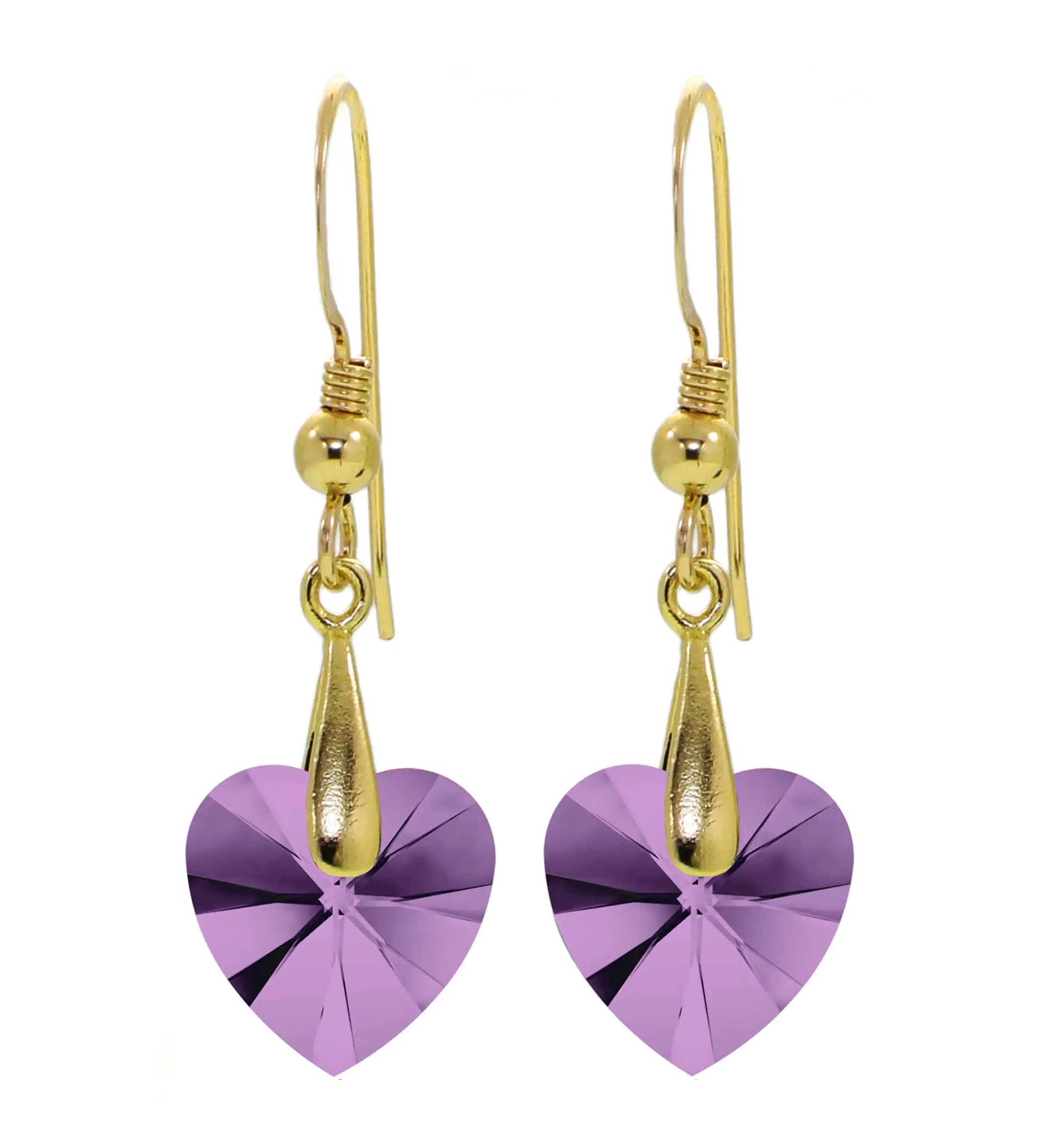 - Crystal Swarovski heart earrings (without inscription) held by gold plated silver fish hooks