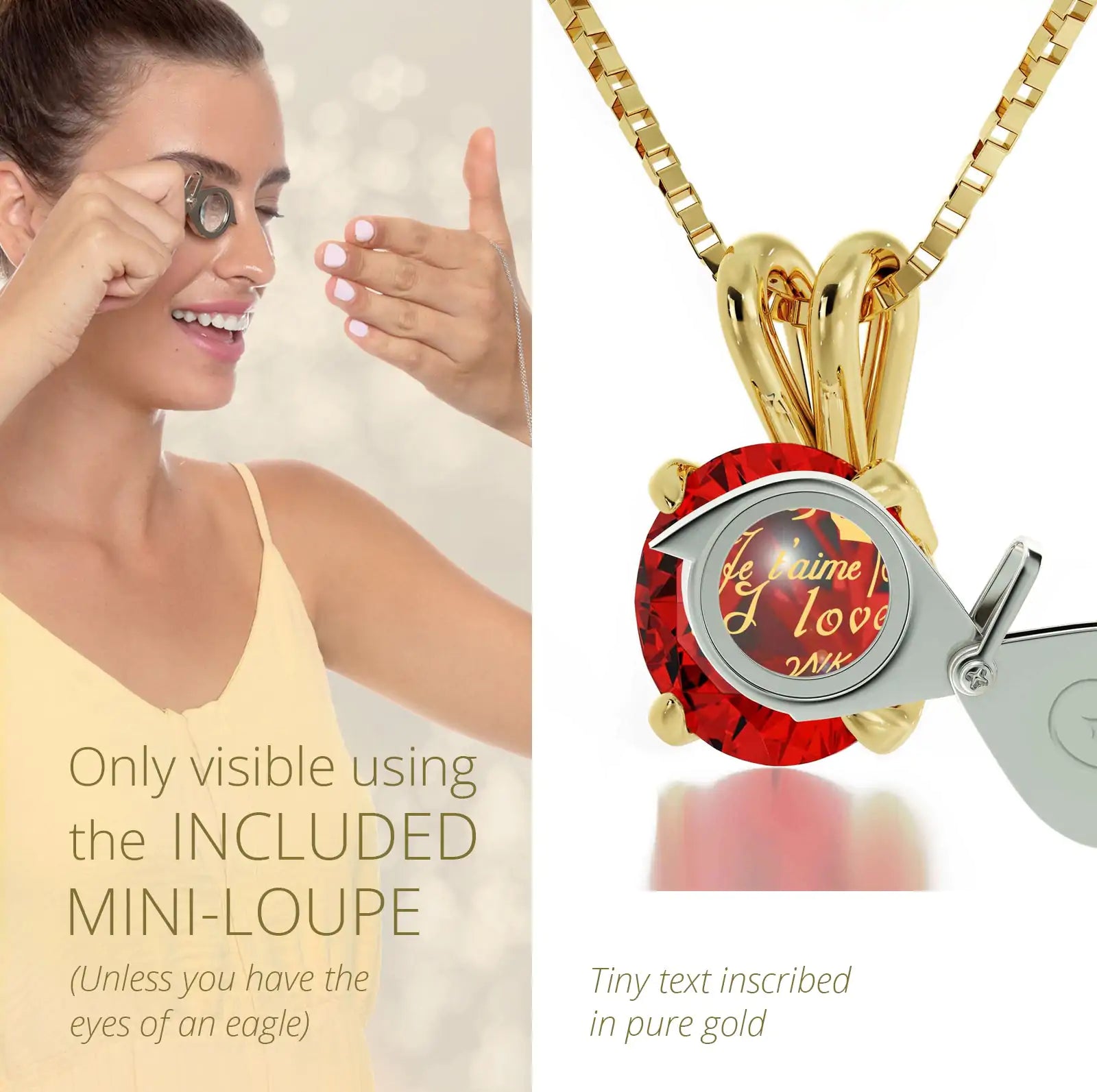 Gold Plated Silver I Love You Necklace Solitaire Pendant 12 Languages 24k Gold Inscribed