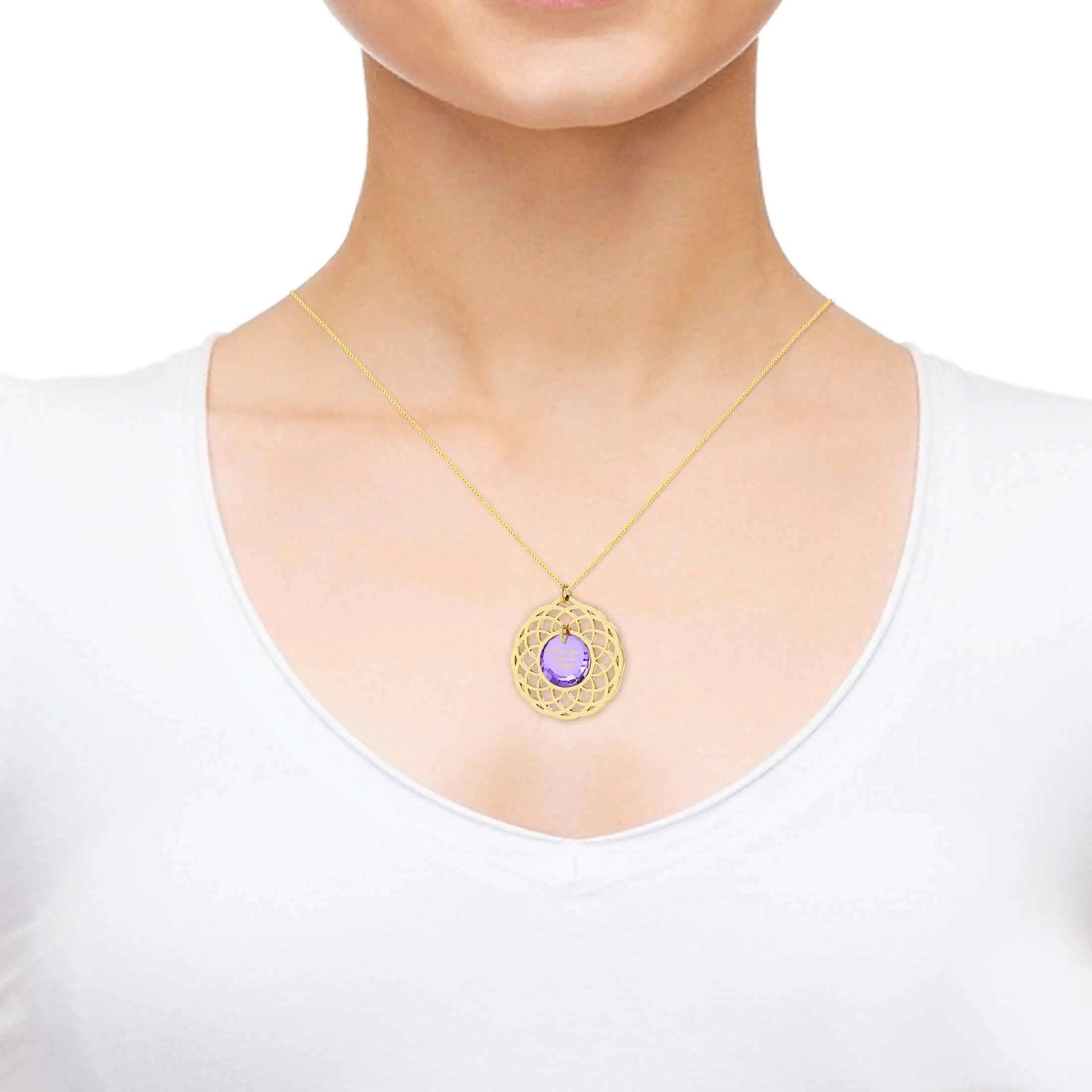 An elegant disc-cut cubic zirconia pendant set against a stunning gold-plated mandala.