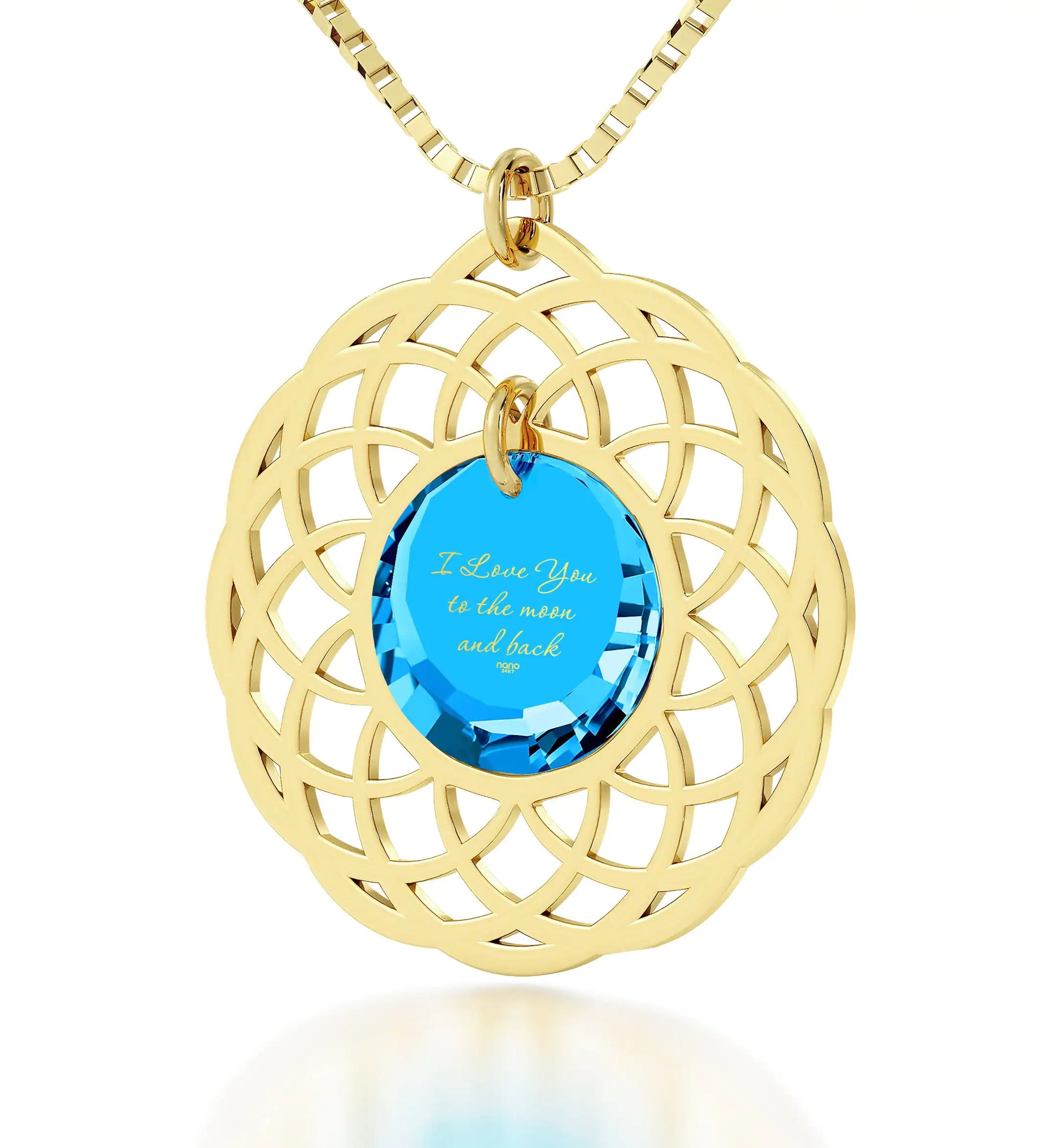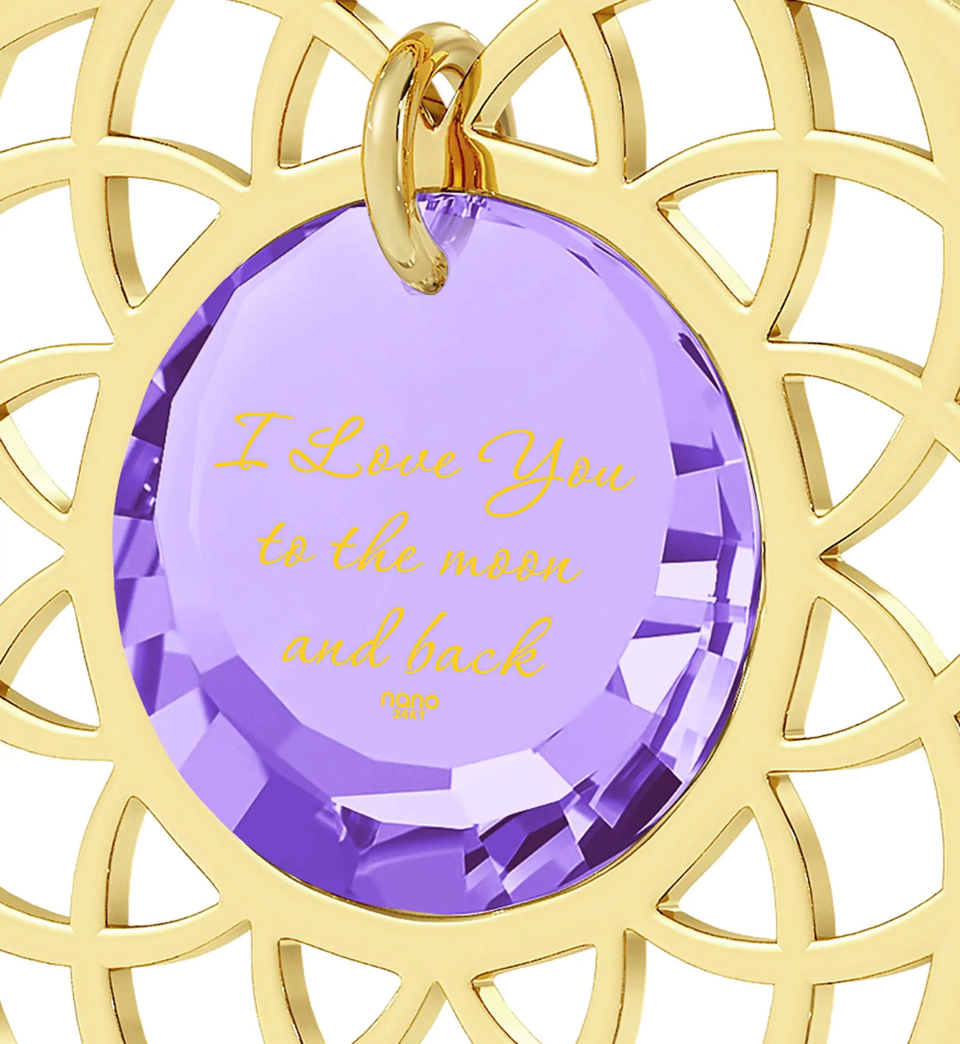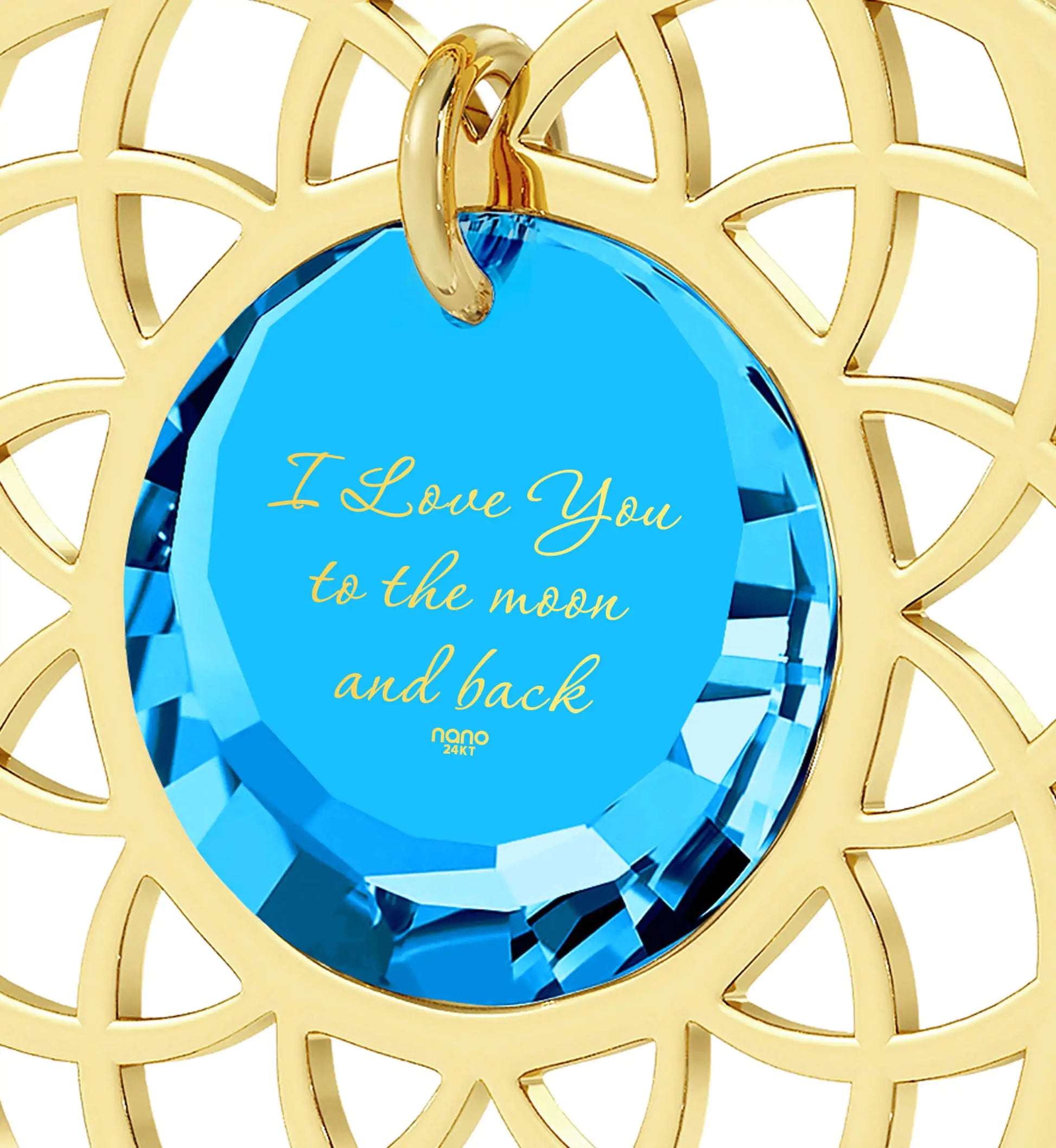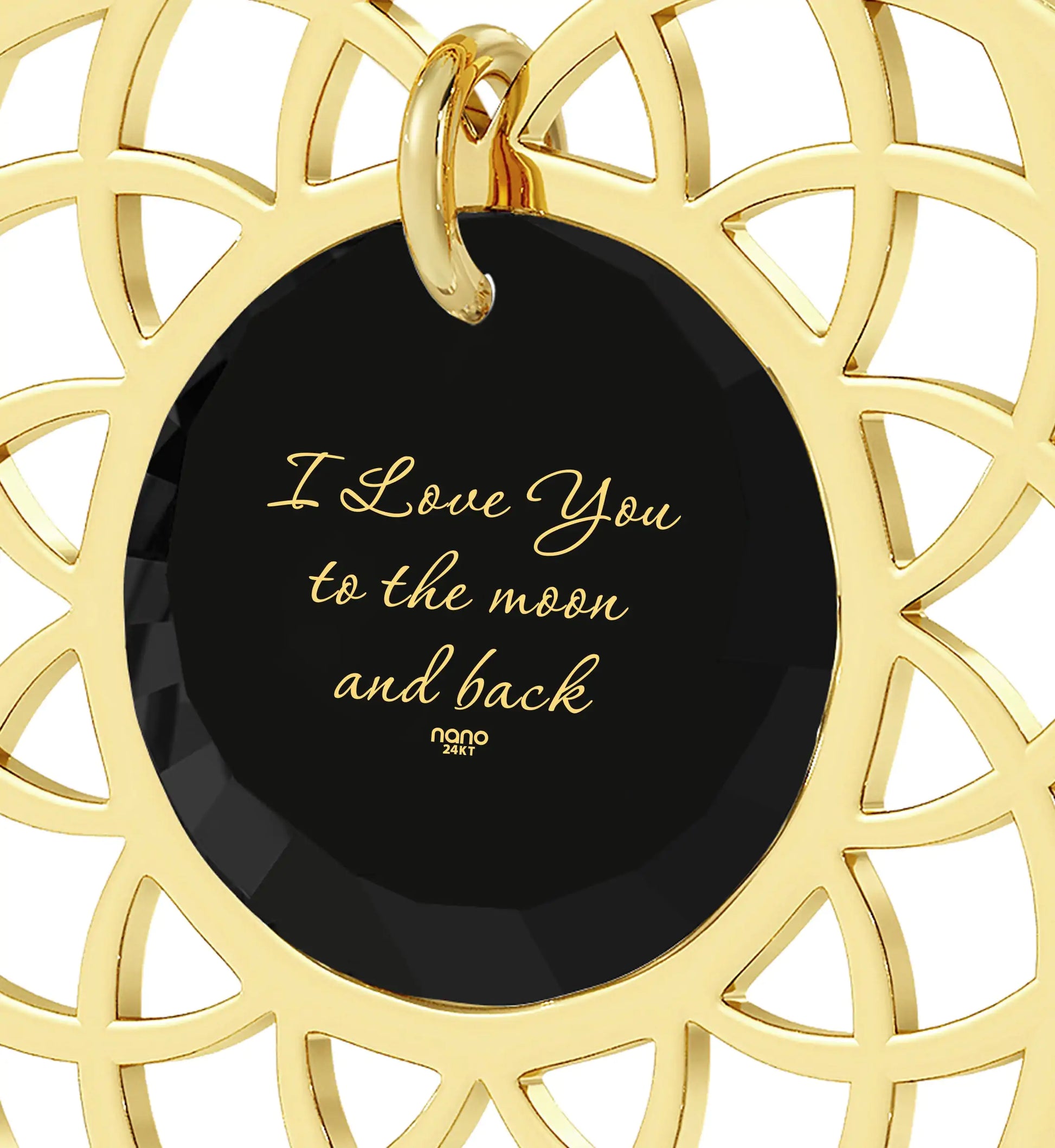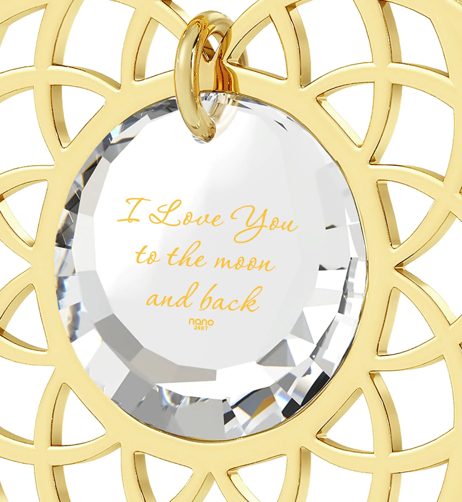 Gold Plated Silver I Love You To The Moon and Back Necklace Mandala Pendant 24k Gold Inscribed