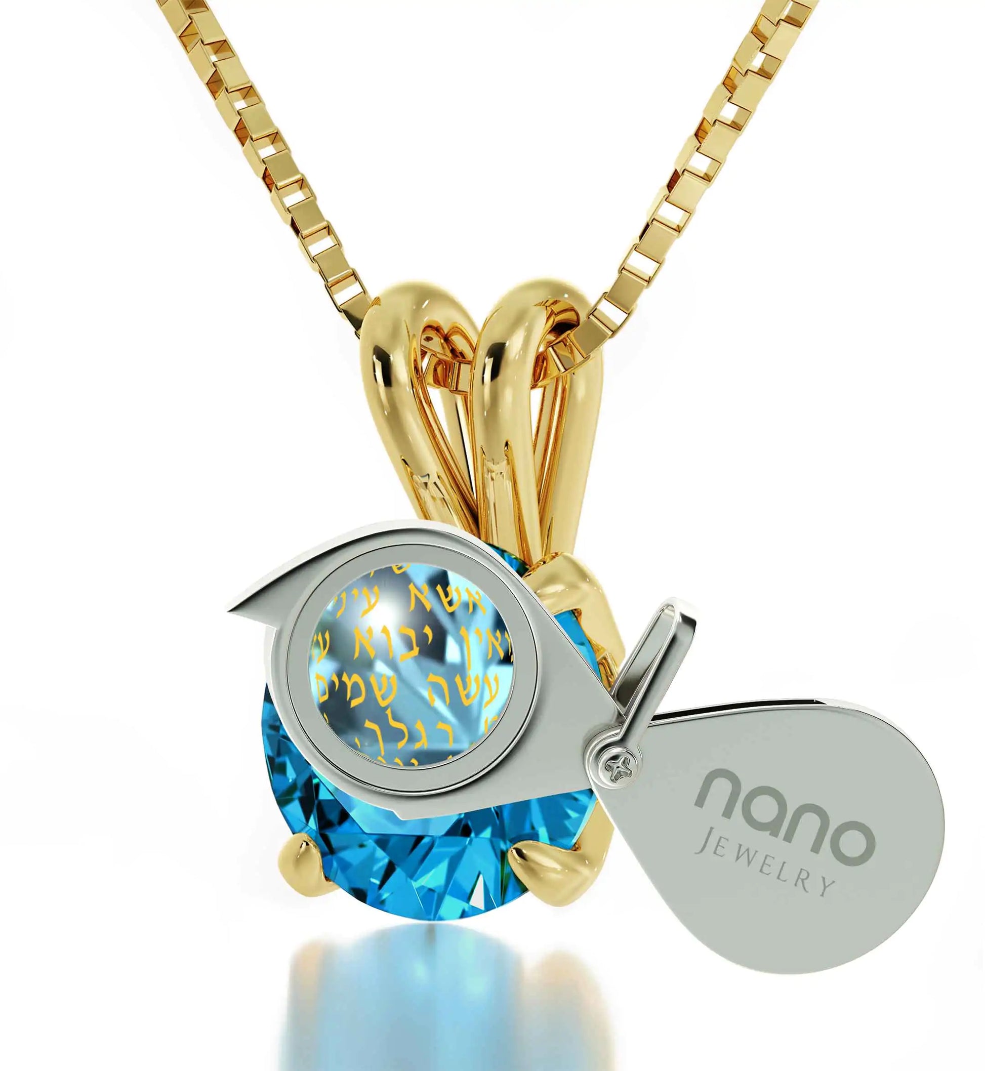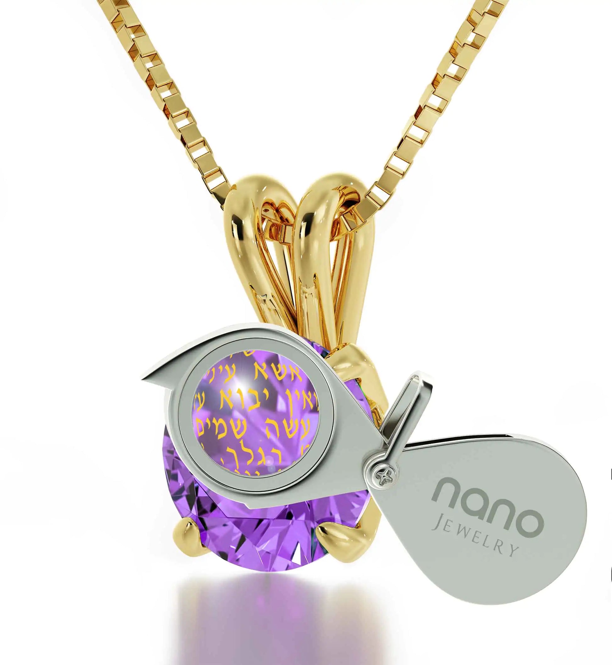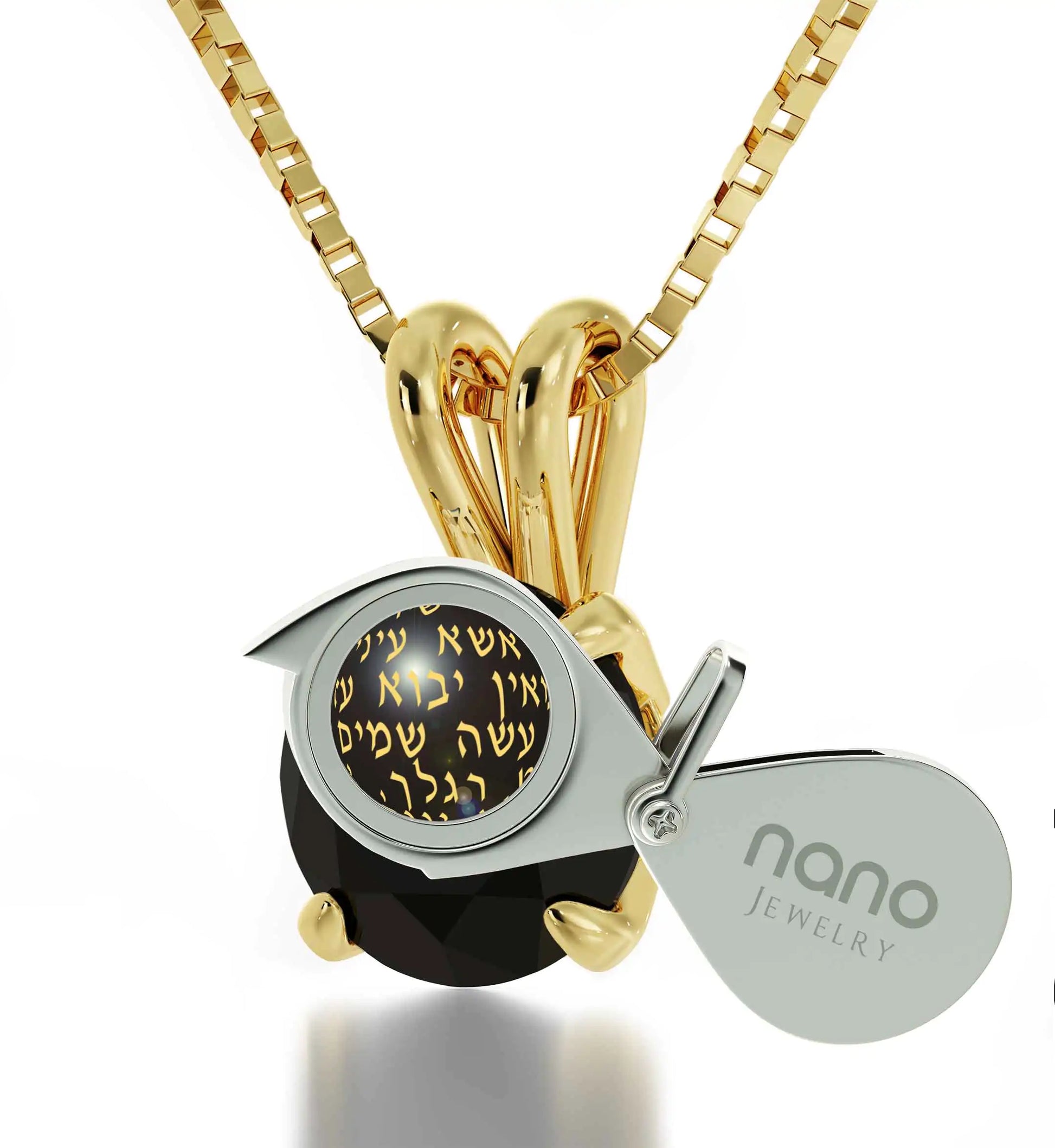A brilliant-cut crystal Swarovski inscribed in 24k gold in Hebrew with Shir Lama’a lot, (A Song of Ascents), Psalm 121, the most reflective Jewish prayer sung as an expression of hope and protection.