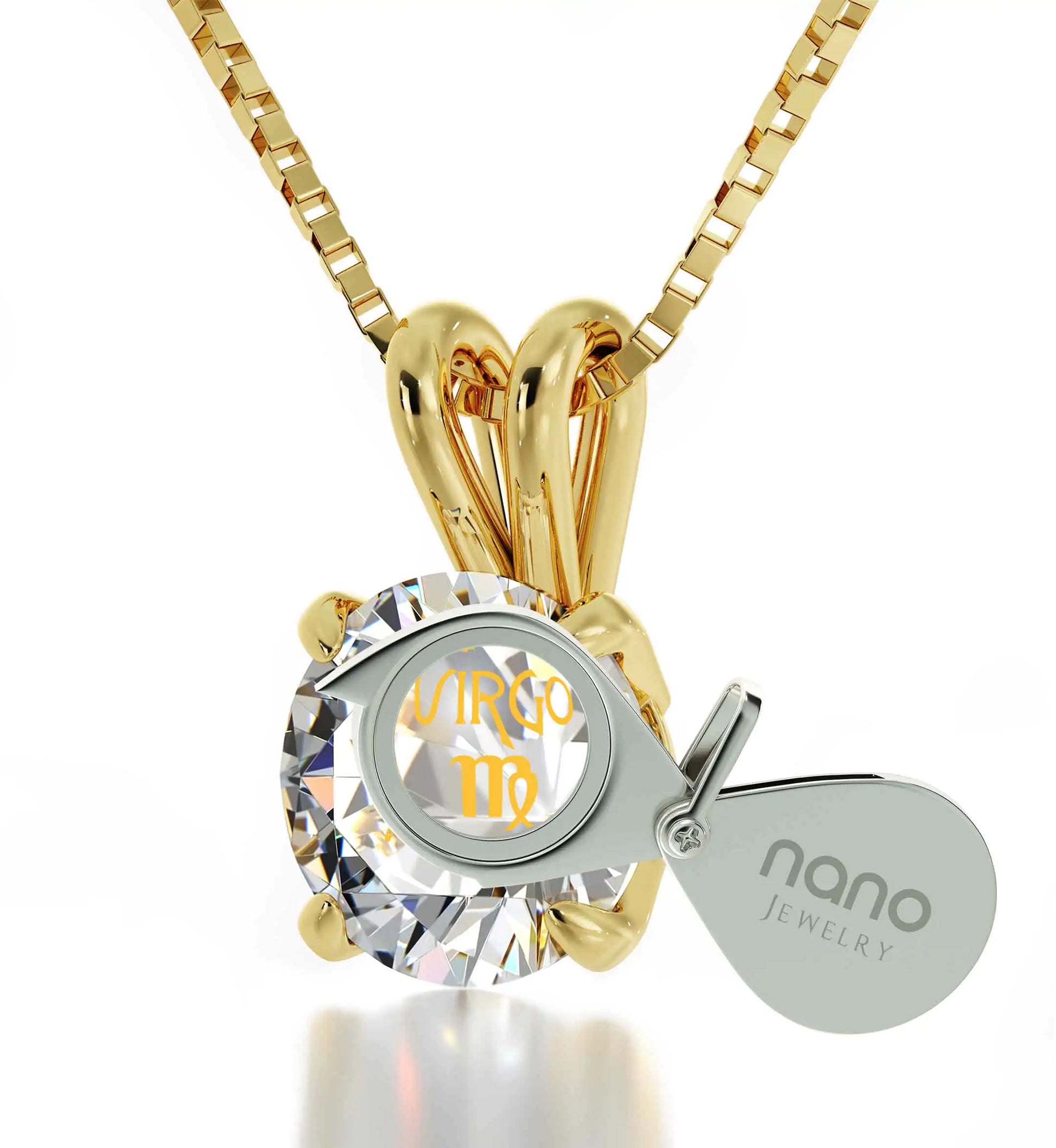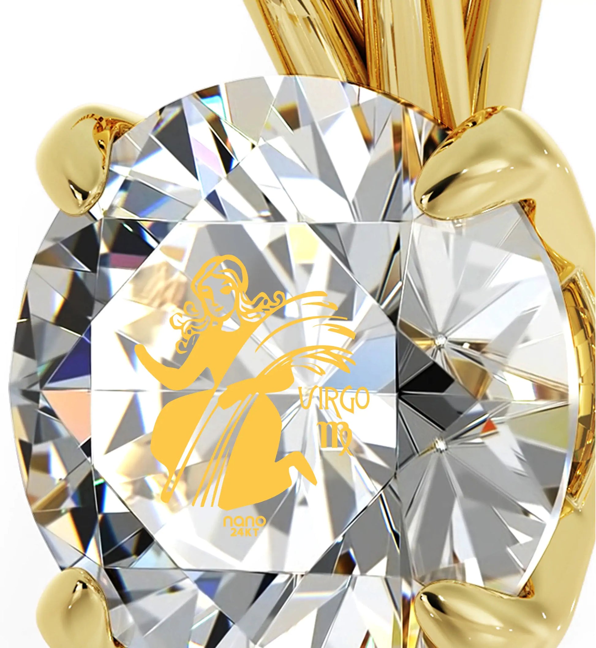 Gold Plated Silver Virgo Necklace Zodiac Pendant 24k Gold Inscribed on Crystal