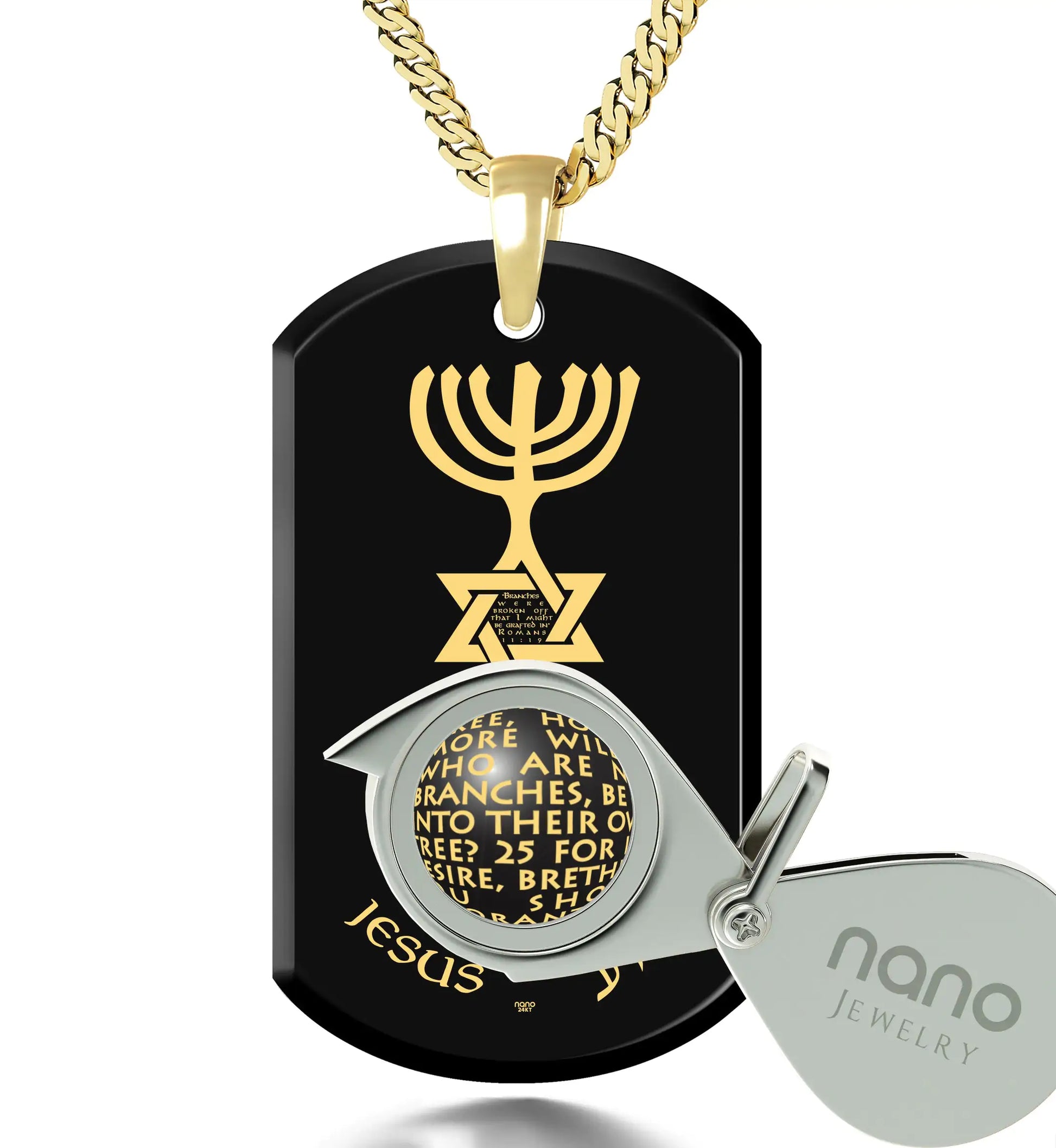 Introducing the Men's Messianic Seal Necklace, a gold-inscribed symbolic dog tag pendant that stands out and shows your faith in relevant boldness. Crafted with modern aesthetics in mind, this sophisticated, unique design is perfect for making a statement at any gathering. This necklace is detailed with the classic Messianic Seal of two fish on either side wrapped around an ancient Hebrew script reading 'Yeshua' and is constructed of solid 14K gold plated stainless steel. It's light enough to be routinely worn yet strong enough to handle all activities without worry - it won't let you down no matter where life takes you! Show off your style and religious devotion with the striking Men's Messianic Seal Necklace; you will be sure to make an enduring impression!