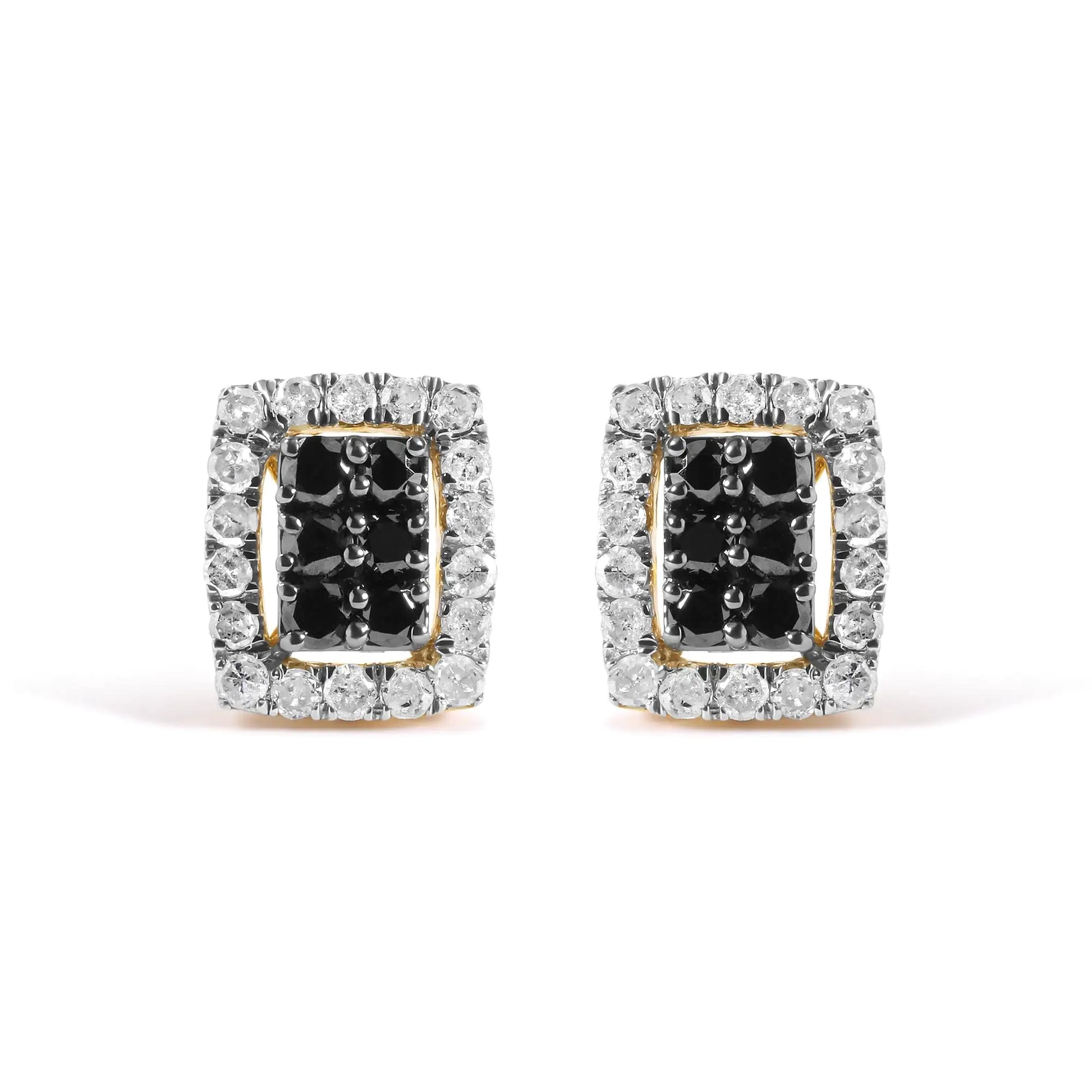 Men's 10K Yellow Gold 1.00 Cttw White and Black Diamond Emerald Shape Halo Stud Earring (Black / I-J Color, I2-I3 Clarity)