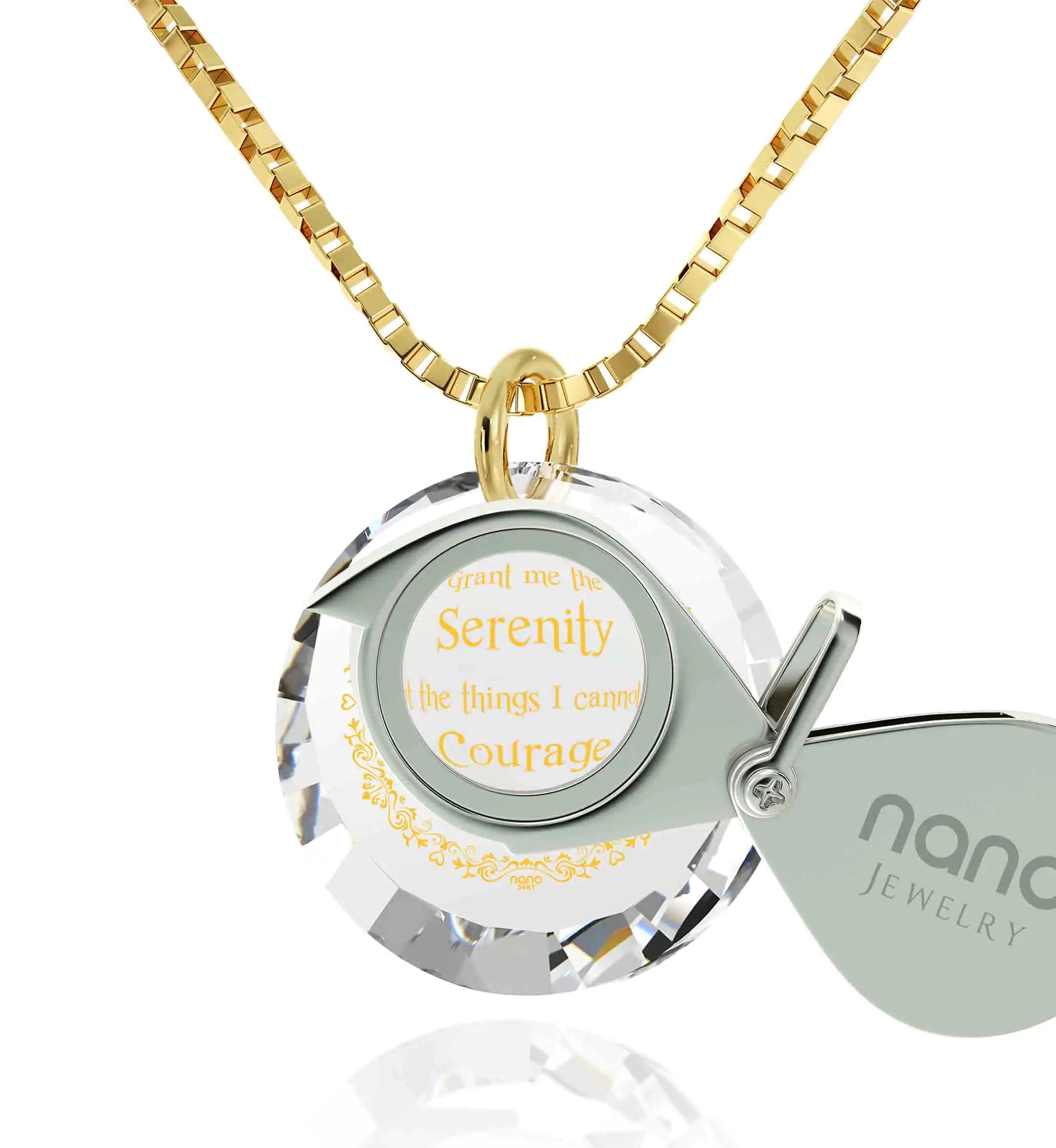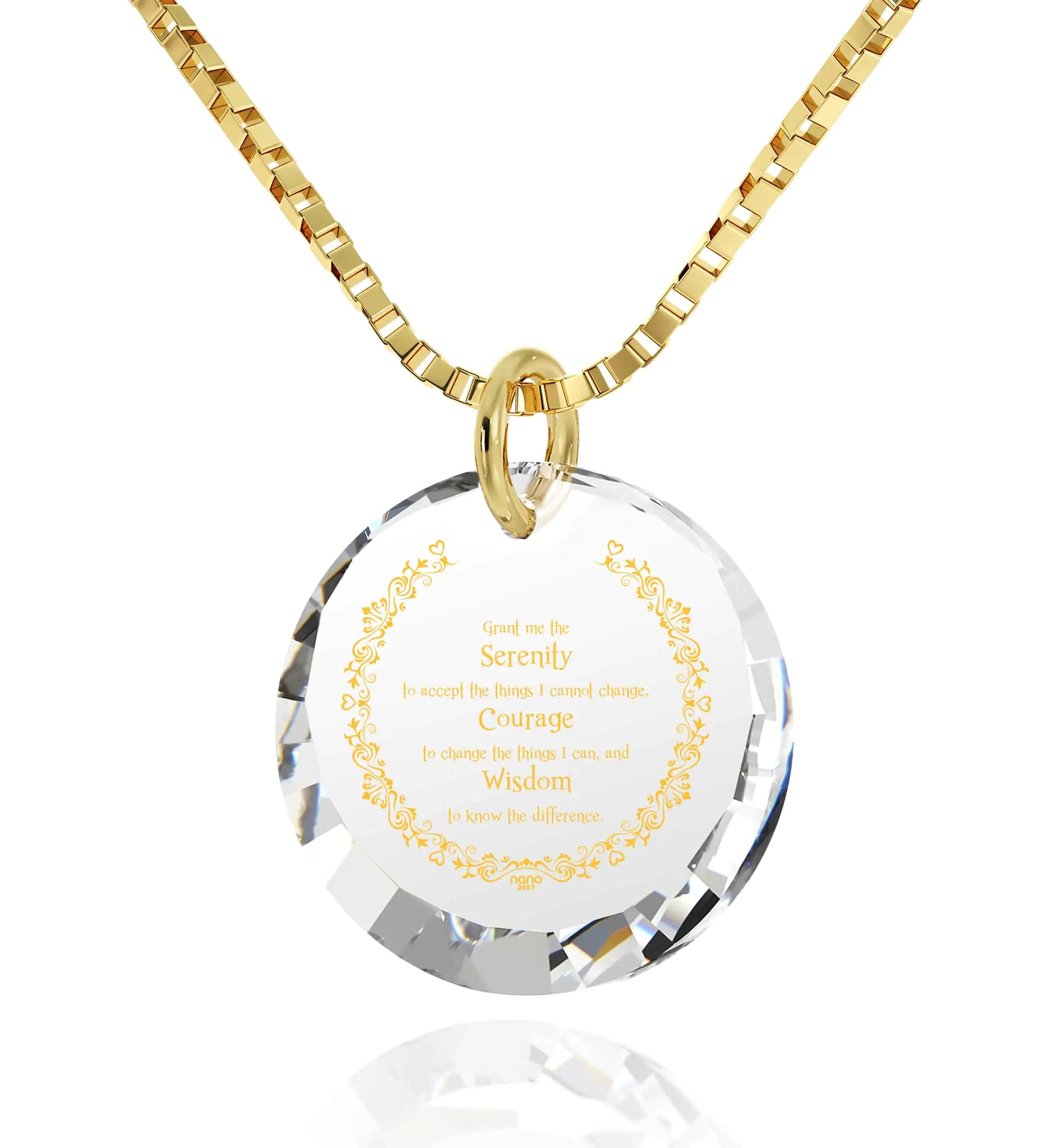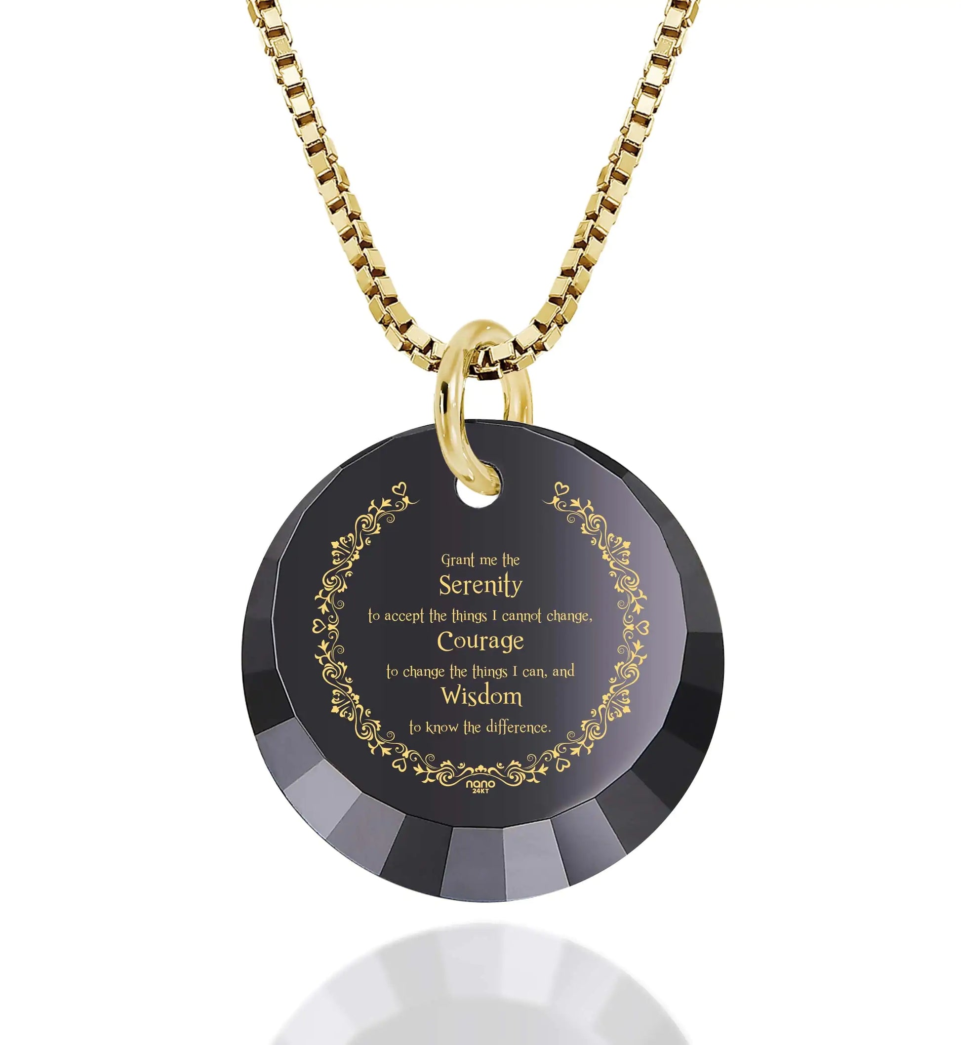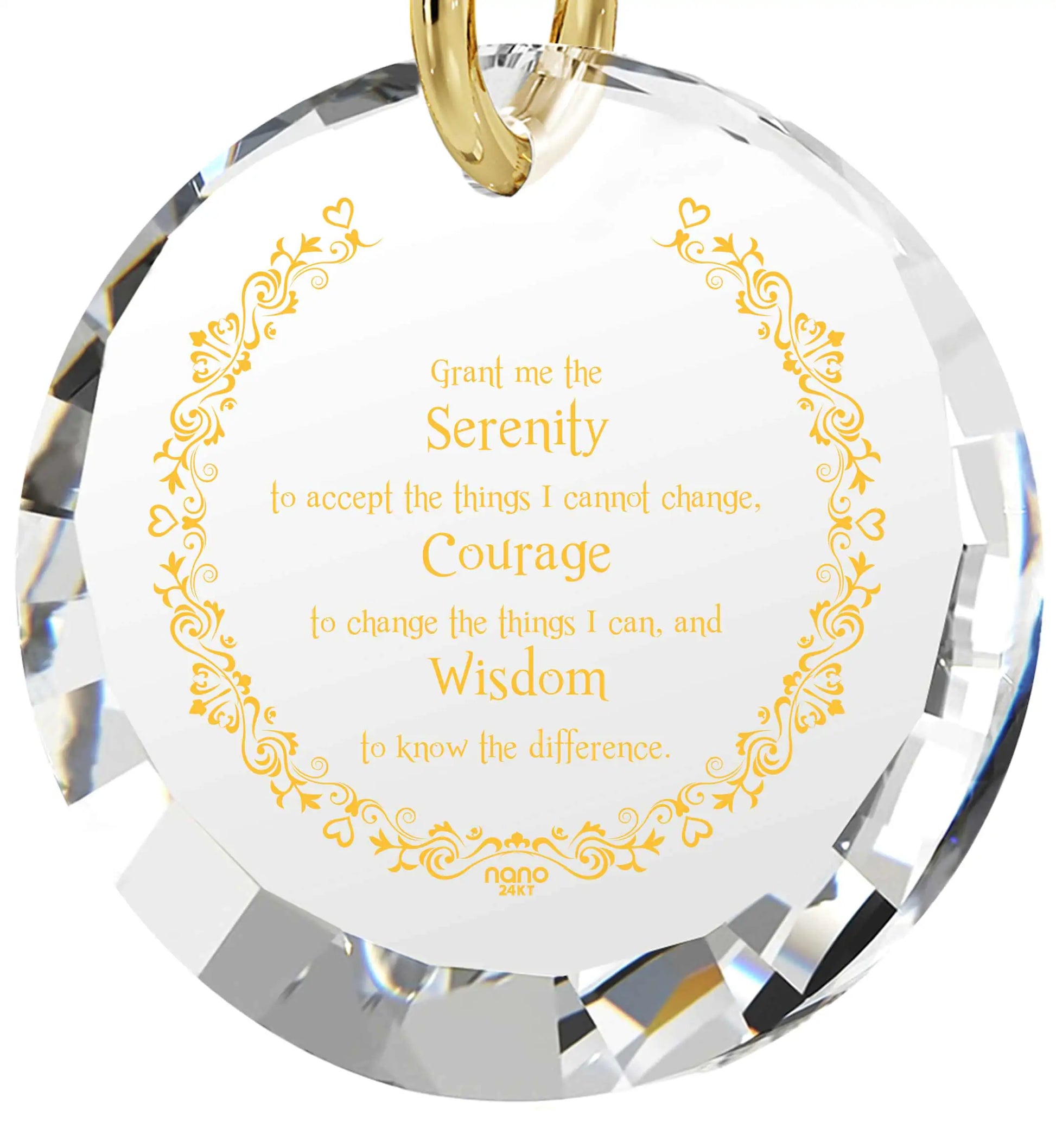 Introducing our Serenity Prayer Necklace, a powerful and meaningful piece of symbolic jewelry that embodies the essence of true acceptance and courage. Crafted with ingenuity and innovation, this necklace features the profound words of the Serenity Prayer, originally written by Reinhold Niebuhr. "Grant me the serenity to accept the things I cannot change, courage to change the things I can and wisdom to know the difference." Widely adopted by Alcoholics Anonymous and other 12-step recovery programs, this prayer holds a profound significance for those seeking true acceptance and inner strength. The necklace serves as a constant reminder of the serenity that comes from embracing life's challenges with courage and wisdom, making it a powerful and cherished accessory for anyone on a journey of personal growth and healing. Embrace the transformative message of the Serenity Prayer with this inspiring and impactful Serenity Prayer Necklace.