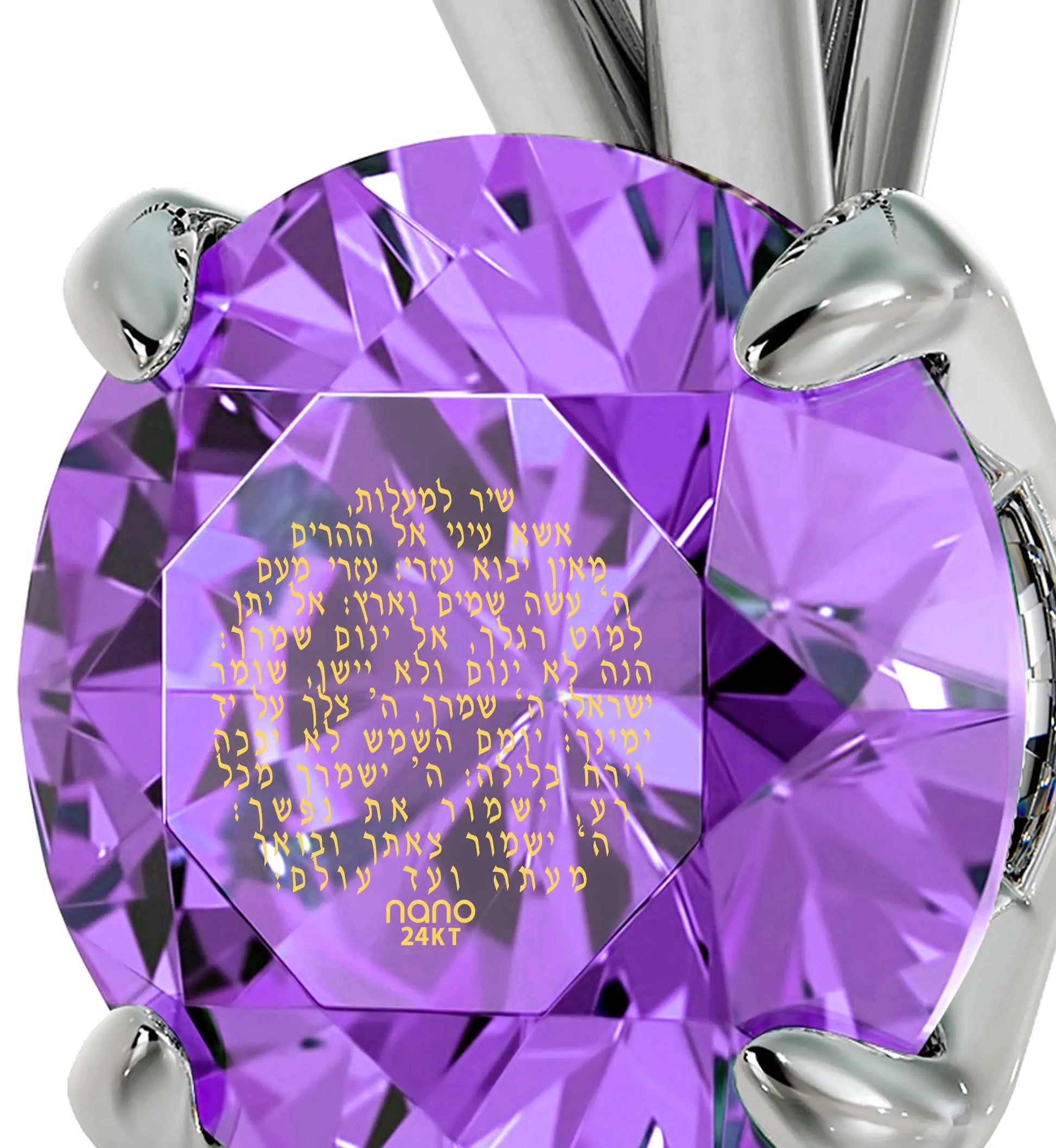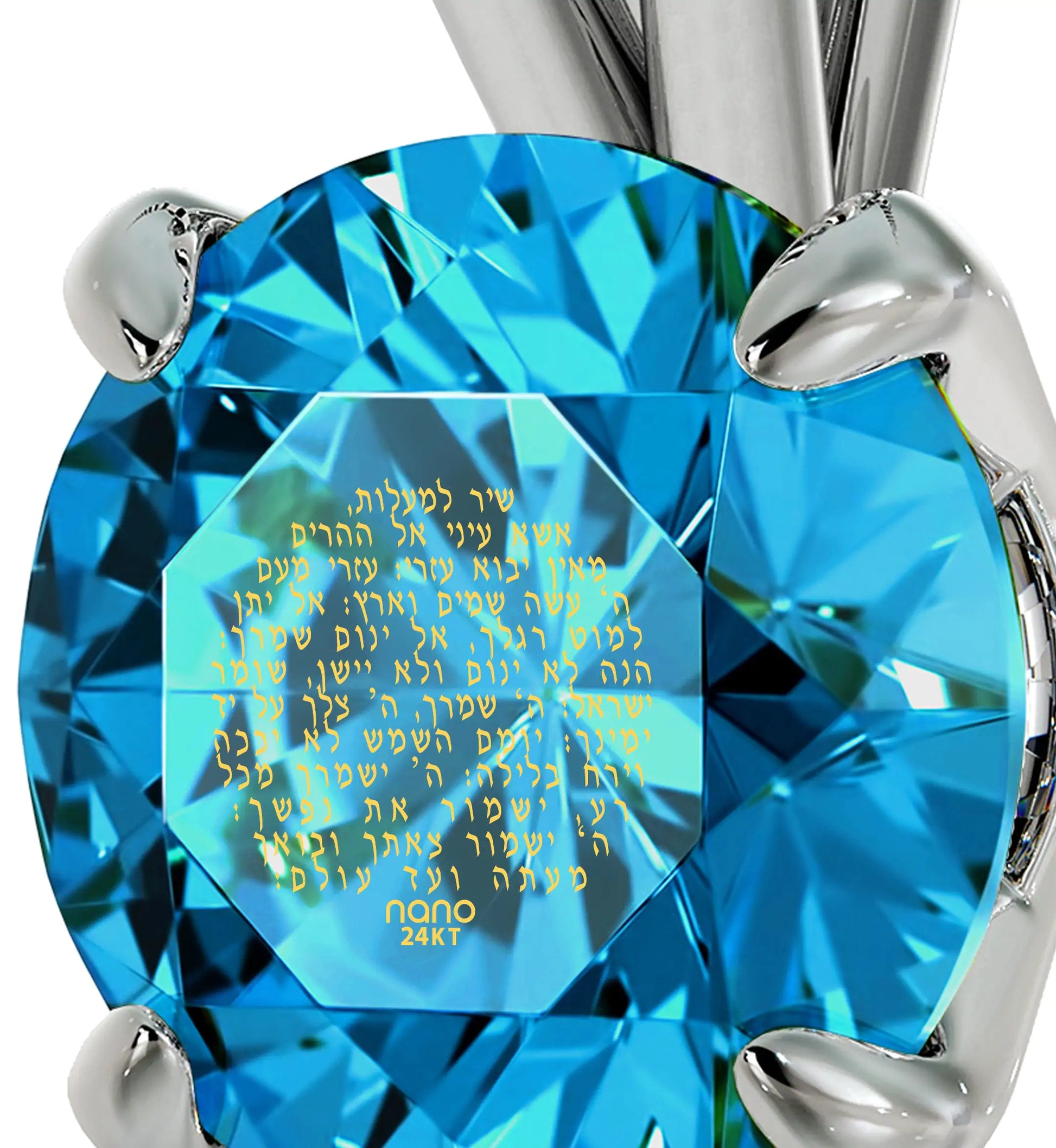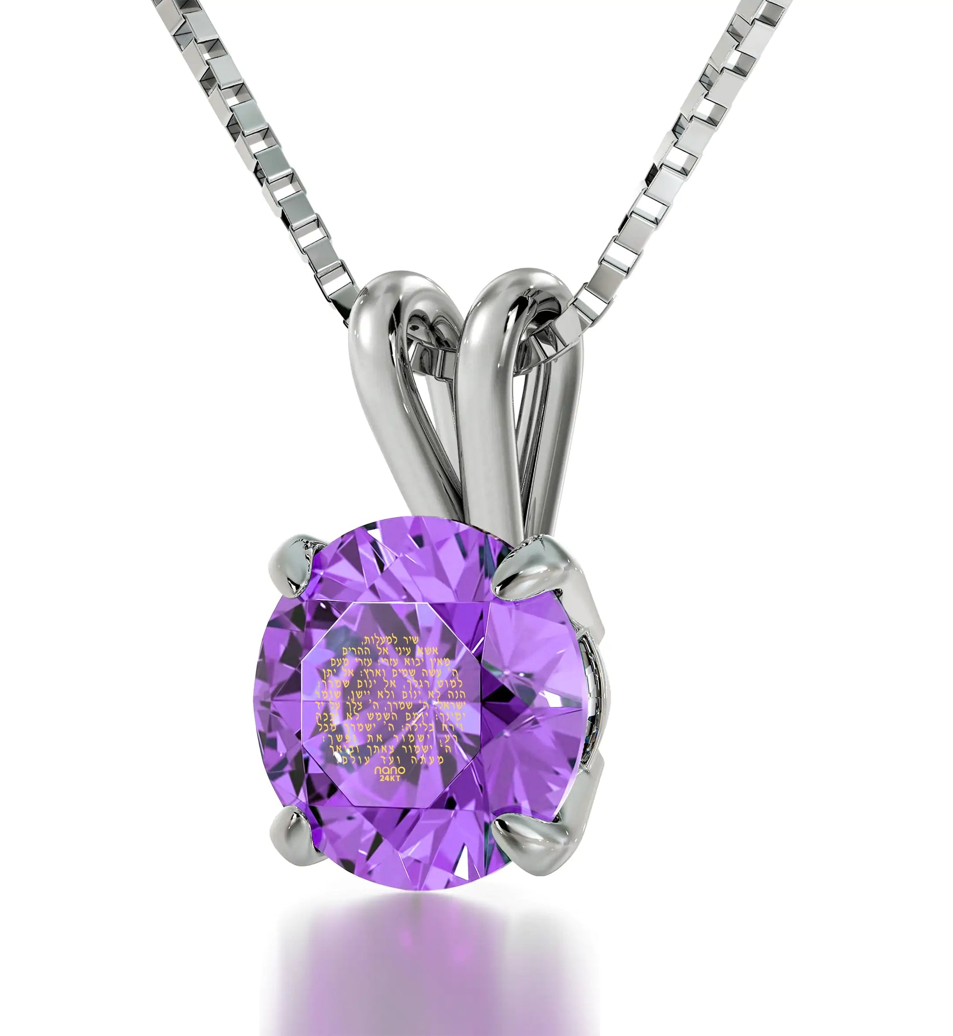 Immerse yourself in the splendor of our exquisite necklace, featuring a brilliant-cut crystal Swarovski gem inscribed in 24k gold with the profound words of Shir Lama’a lot, Psalm 121 – a song of ascent, sung as a beacon of hope and protection. The intricate detailing harmonizes beautifully with the unique design, culminating in a necklace that transcends elegance and serves as the perfect religious gift. Whether it's a cherished emblem of your own faith or a gesture of deep significance for someone special, this necklace is a tangible reminder of the sacred and enduring connections that shape our lives.
