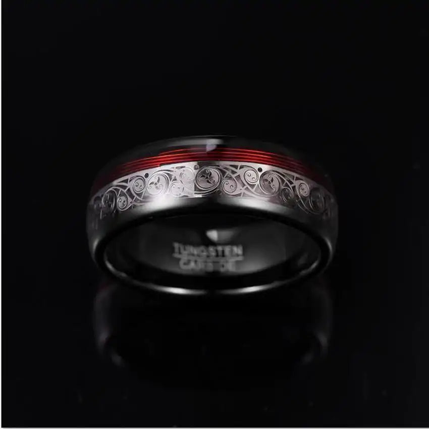 Spiral Motif and Red Guitar String Tungsten Ring