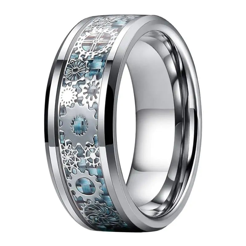 Steampunk Blue Faux Carbon Fiber Tungsten Ring