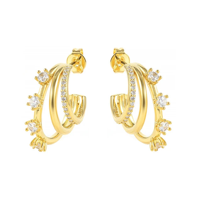 Our Sparkling Zircon Hoop Earrings blend timeless elegance with a modern twist. The classic hoop design is adorned with brilliant zircon stones, offering a contemporary flair that's both sophisticated and stylish. Whether you're heading to a formal event or a casual outing, these earrings elevate your look effortlessly.