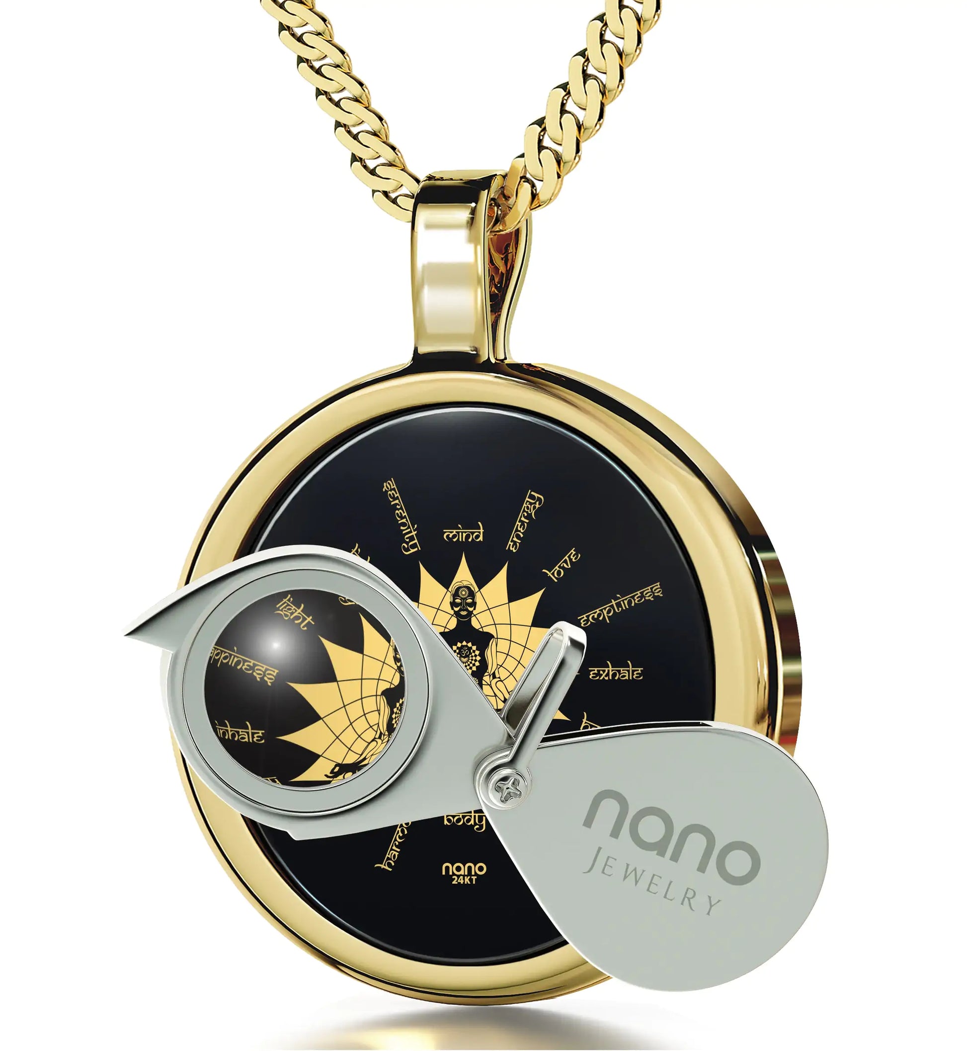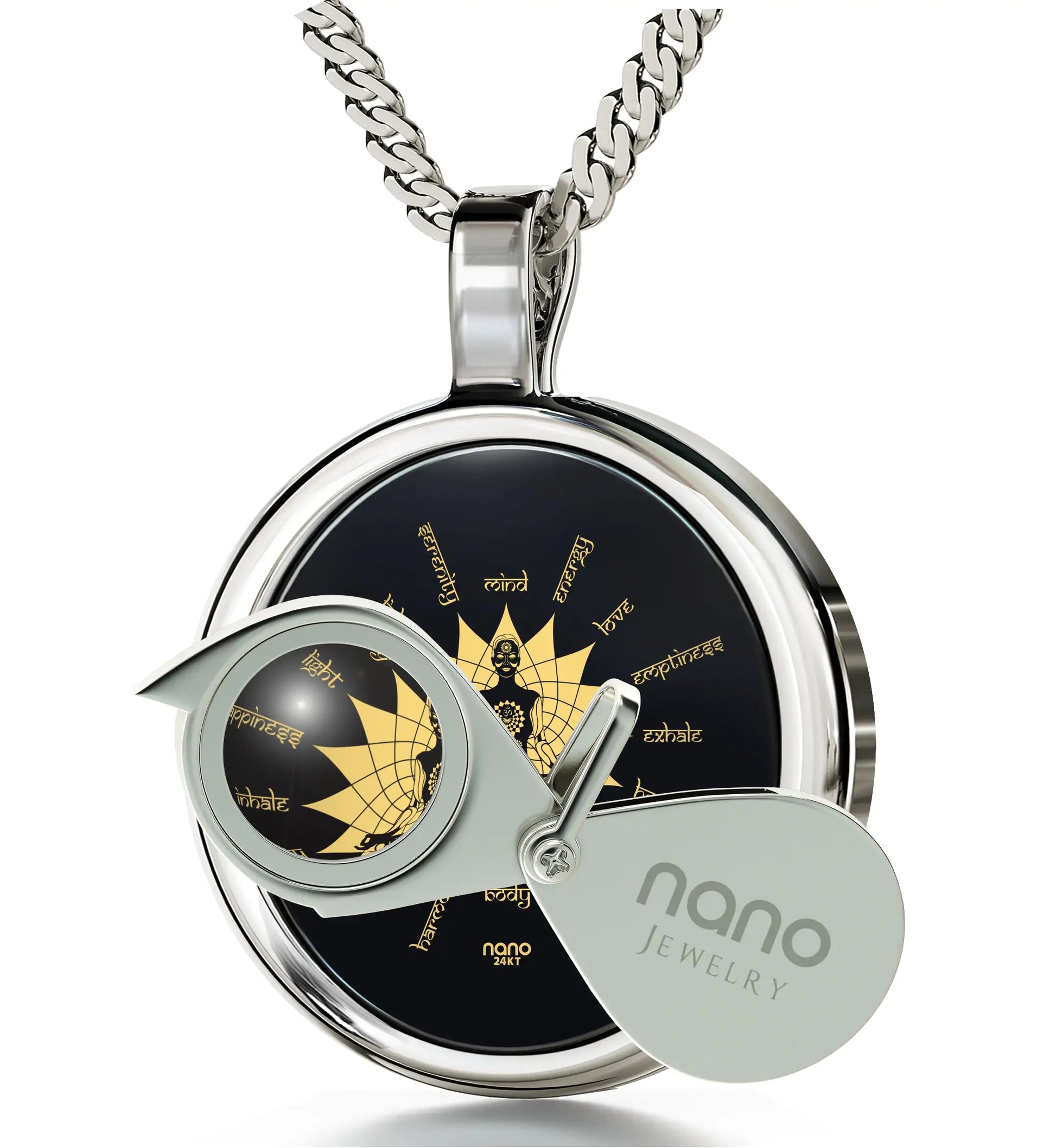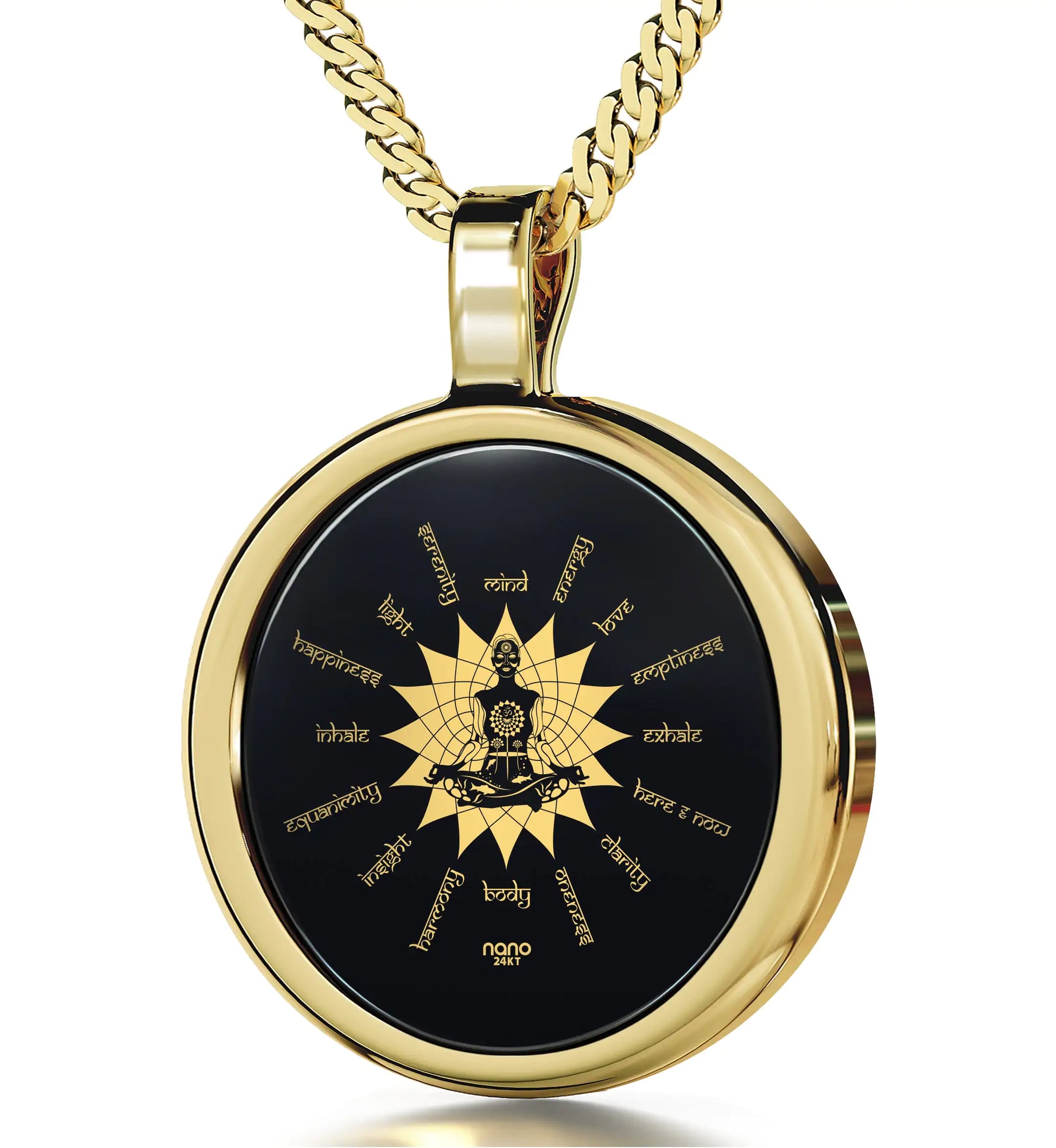 Introducing our Yoga Necklace, a transformative piece of symbolic jewelry designed with ingenuity and innovation. This motivational necklace embodies the essence of mindfulness and tranquility, speaking volumes with its inspiring mantra. The powerful words, "mind, energy, love, emptiness, exhale, here and now, clarity, oneness, body, harmony, insight, equanimity, inhale, happiness, light, serenity," serve as a gentle reminder to be present, find stillness, and quiet the overthinking mind. Crafted with meticulous attention to detail, this necklace serves as a meaningful accessory for yogis, meditation practitioners, or anyone seeking to embrace the power of mindfulness in their daily lives. Embrace the essence of serenity and enlightenment with our Yoga Necklace, an empowering talisman that encourages a harmonious and balanced connection between mind, body, and soul.
